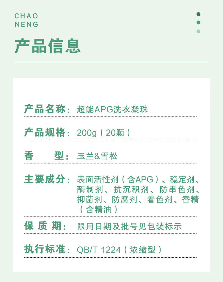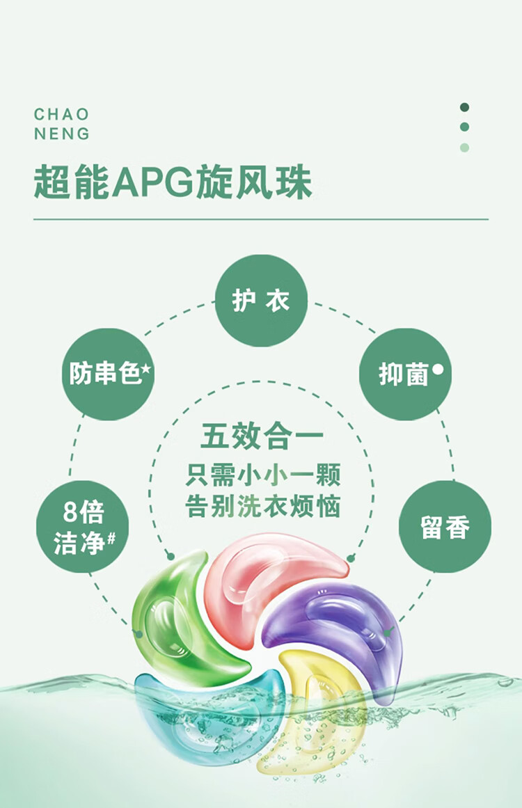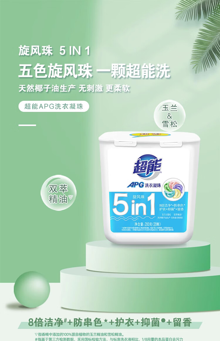 超能 APG 洗衣凝珠 200g(20颗) (单位:盒) 全效5腔旋风珠 白色