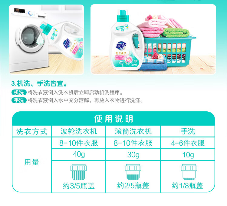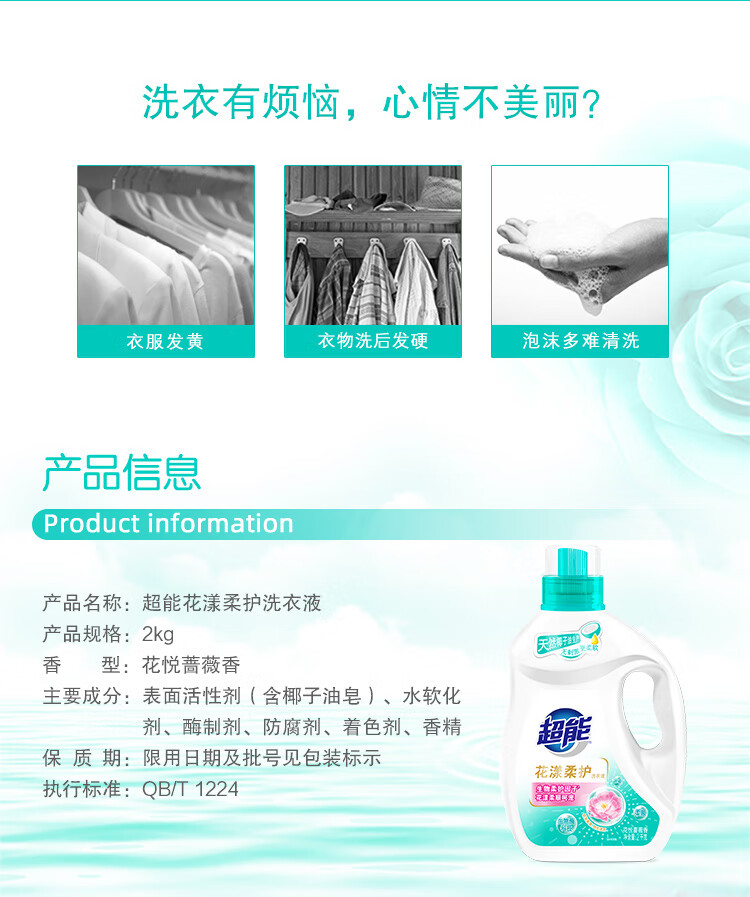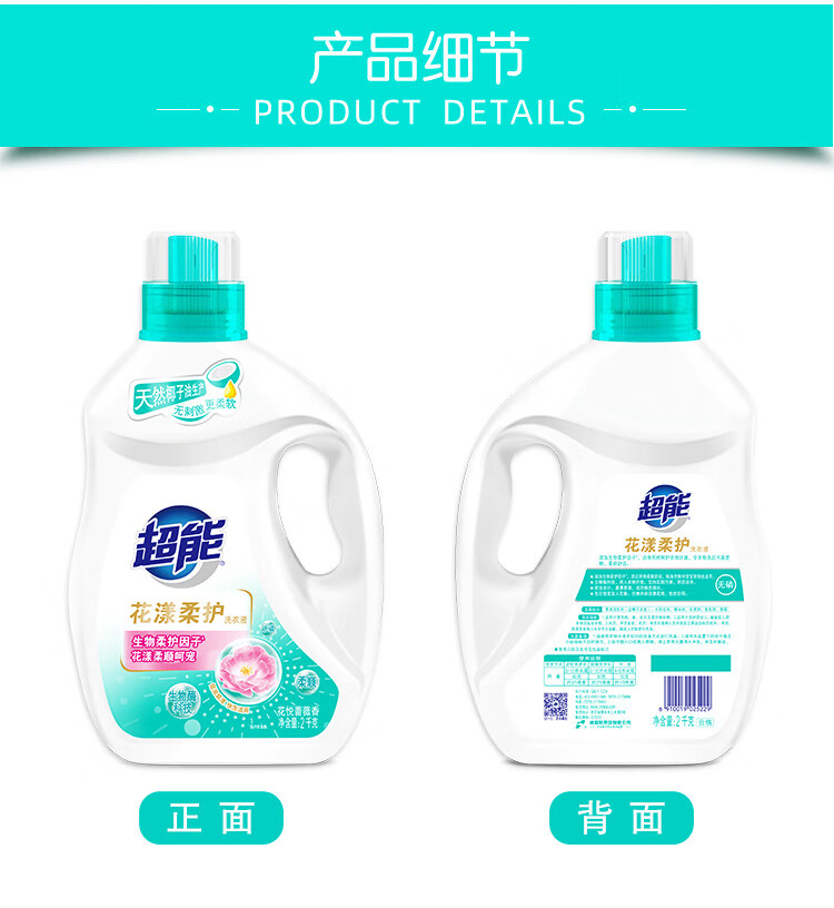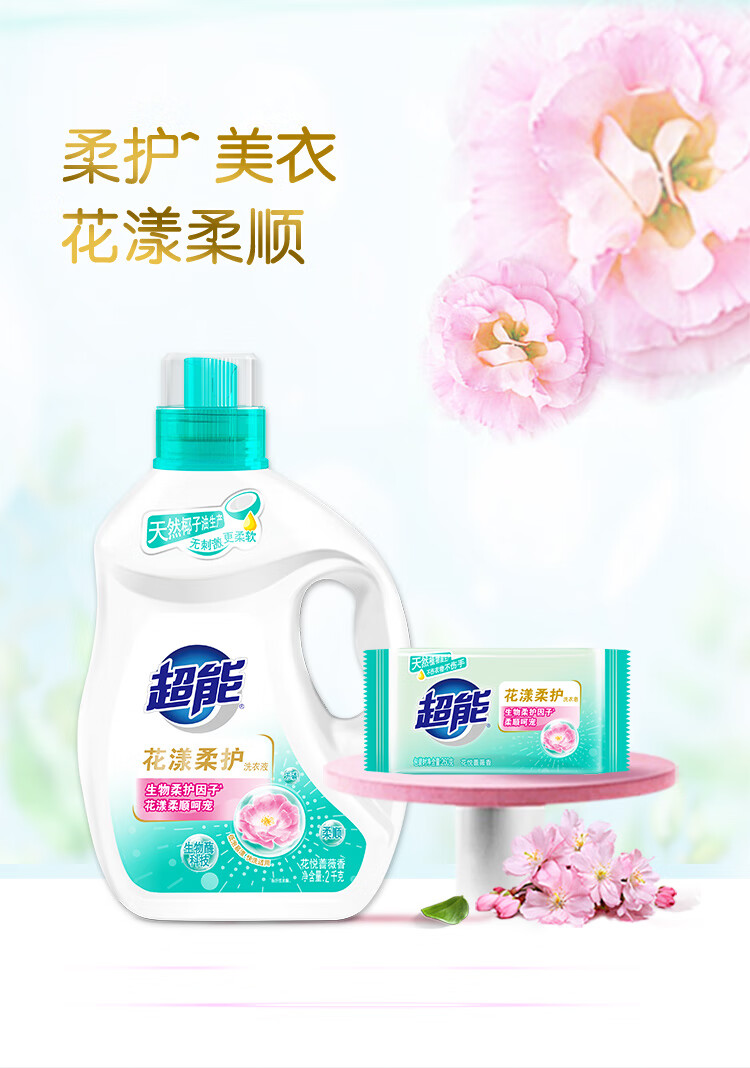 超能 花漾柔护 洗衣液2kg/瓶(单位:瓶) 水蓝色