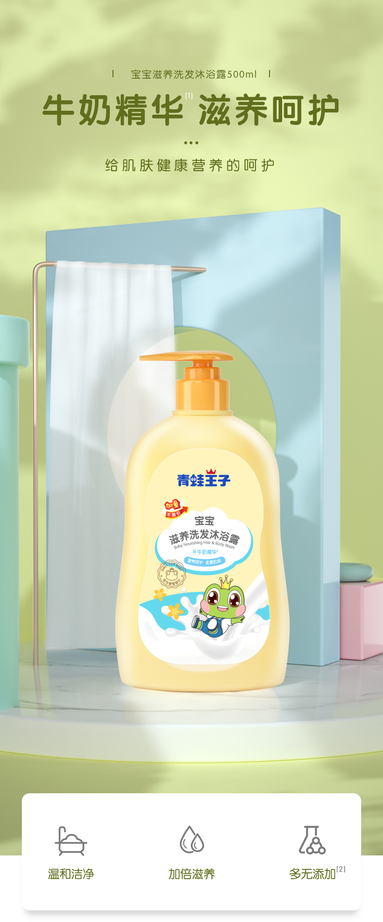 青蛙王子宝宝舒爽洗发沐浴露500ml(瓶) 奶茶杏