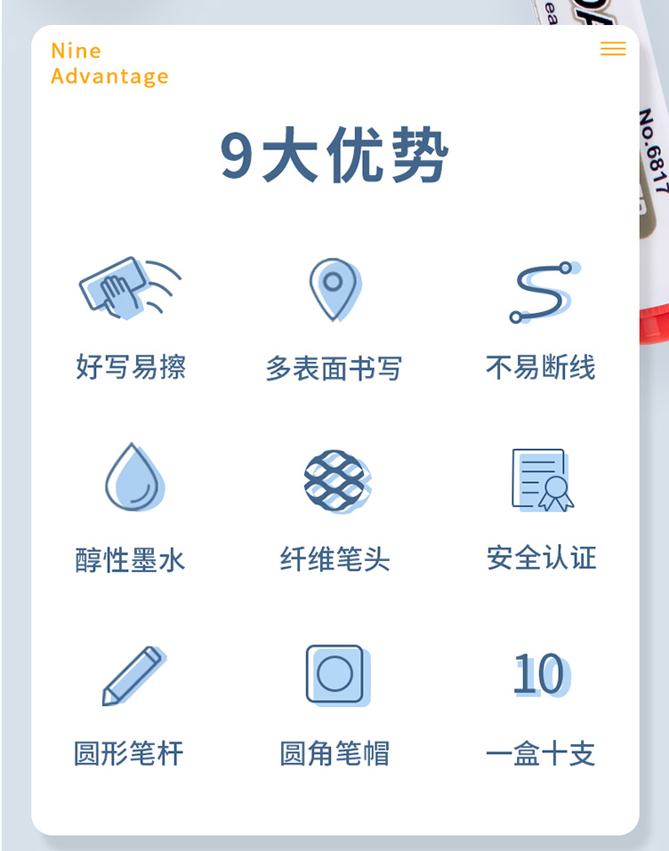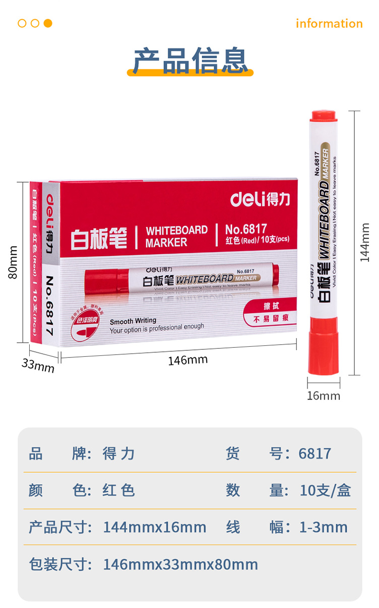 得力优逸白板笔6817 红色 水性记号笔 10支装 红色