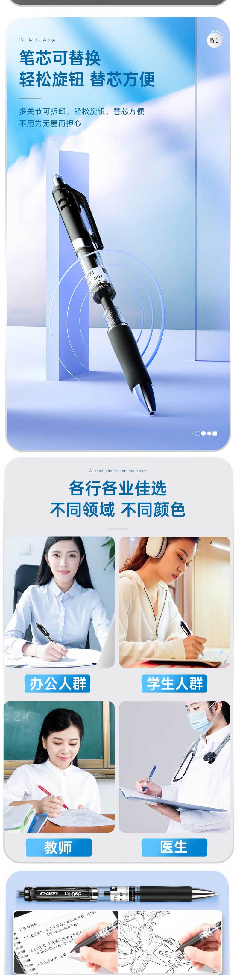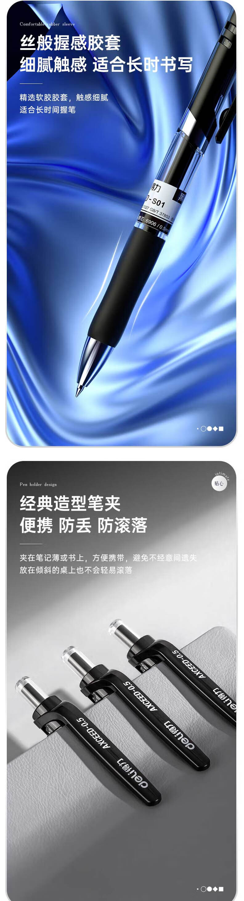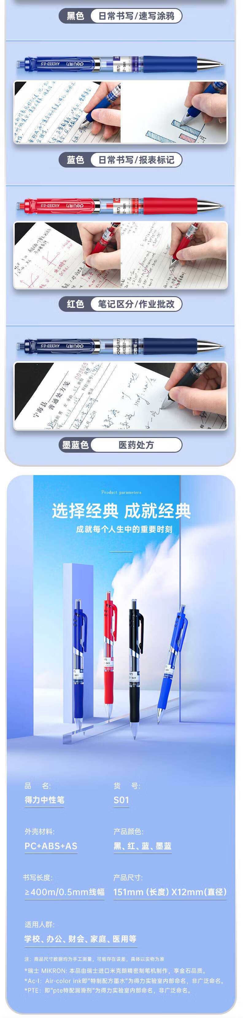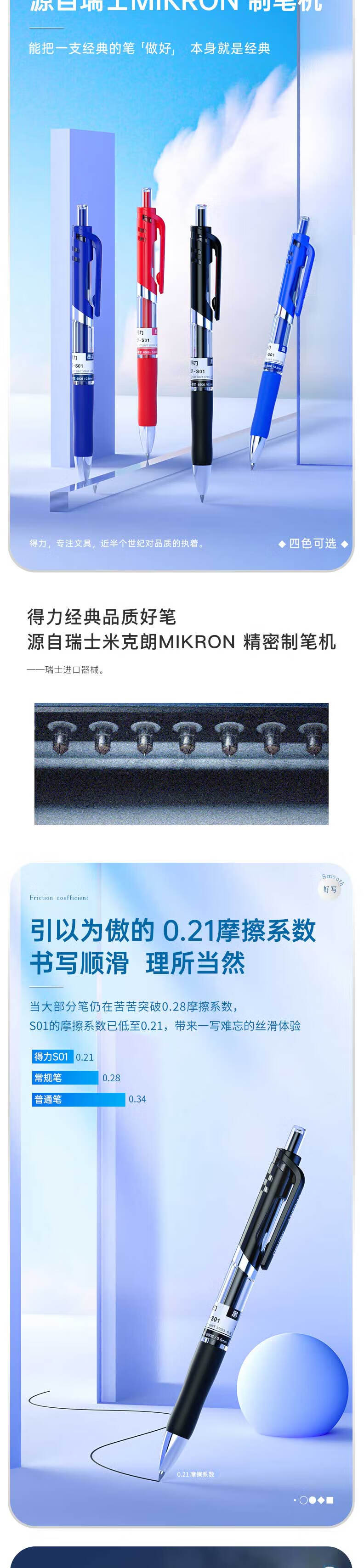 得力(deli) S01 12支/盒 按动中性笔签字笔 黑色(单位:盒)