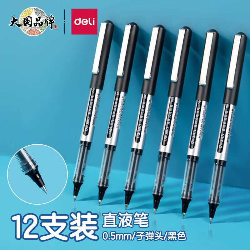 得力S656宝珠笔0.5mm子弹头(黑)1盒12支 黑色