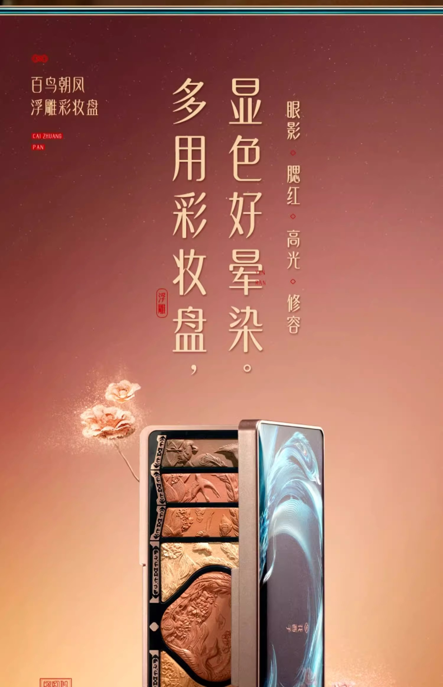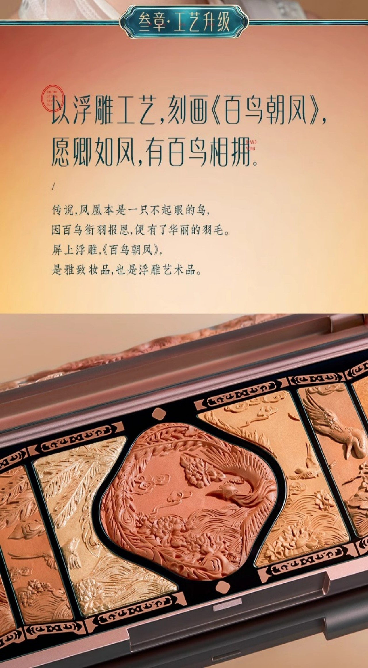 花西子 百鸟朝凤浮雕彩妆盘2.0-檀棕朝凤屏 修容多功能好晕染 12.8g 百鸟朝凤(单位:盒)