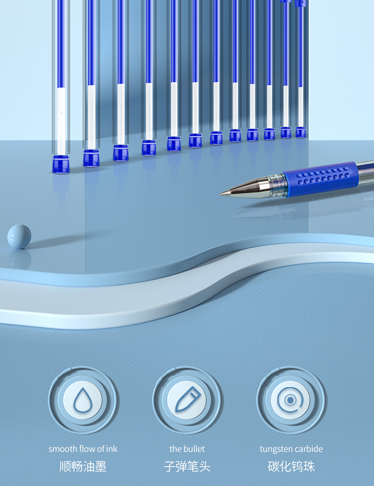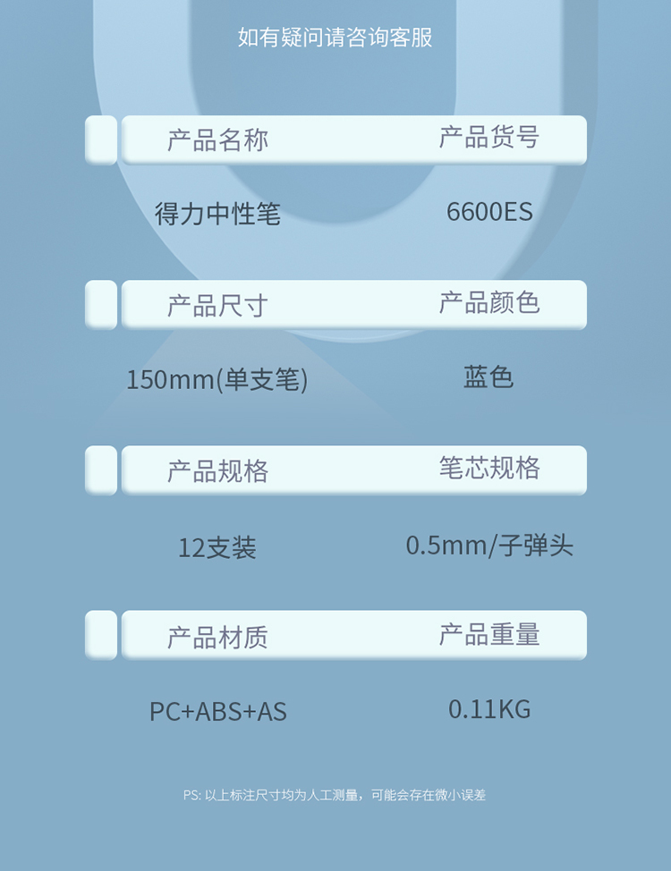 得力6600ES中性笔0.5mm子弹头(蓝)12支/盒 水蓝色