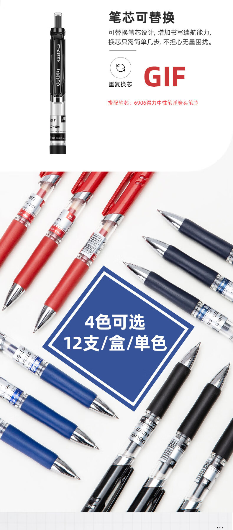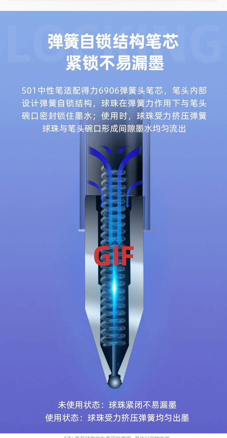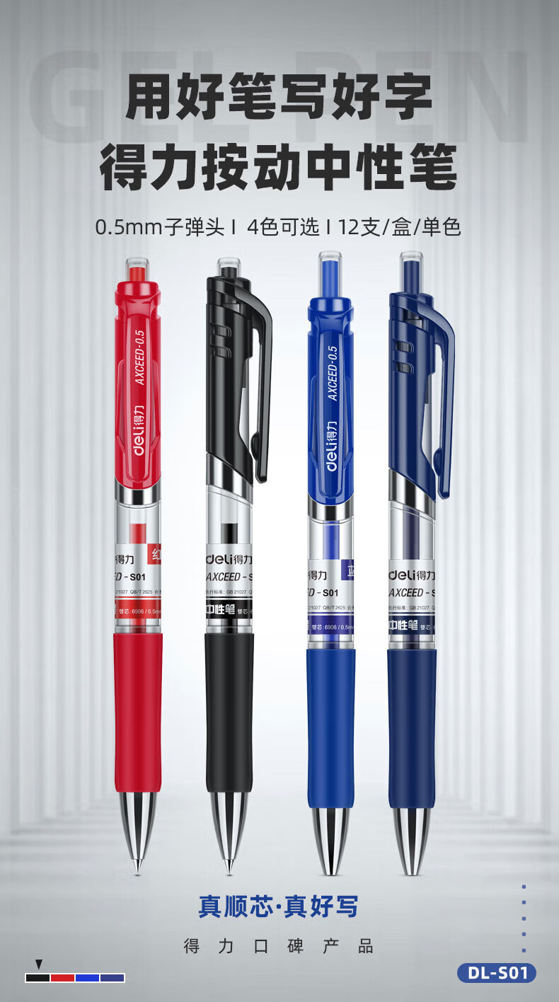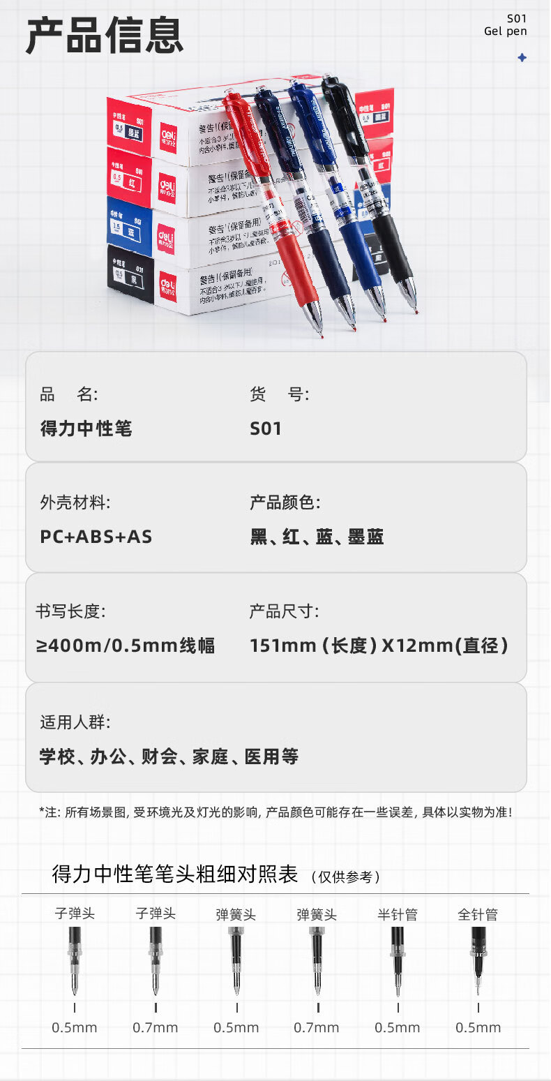 得力S01中性笔0.5mm弹簧头(蓝) 12支/盒 幻影蓝