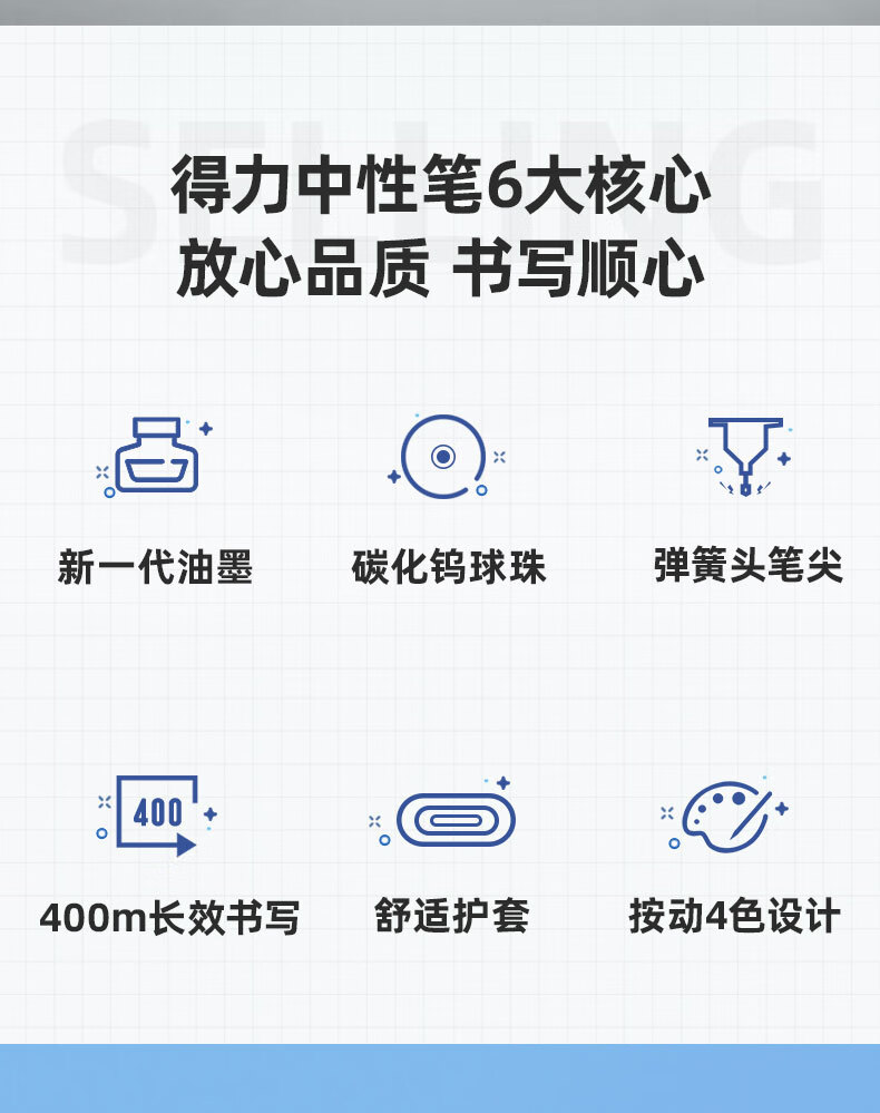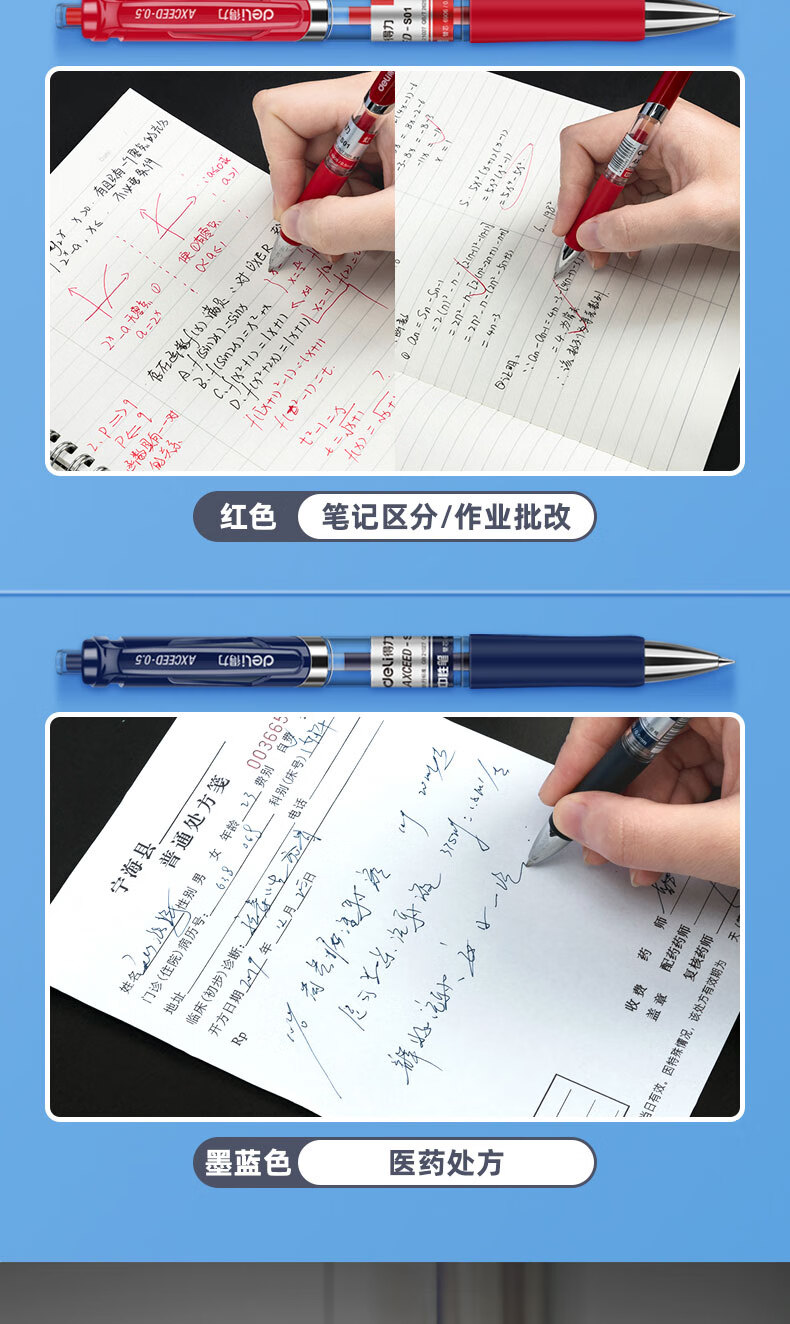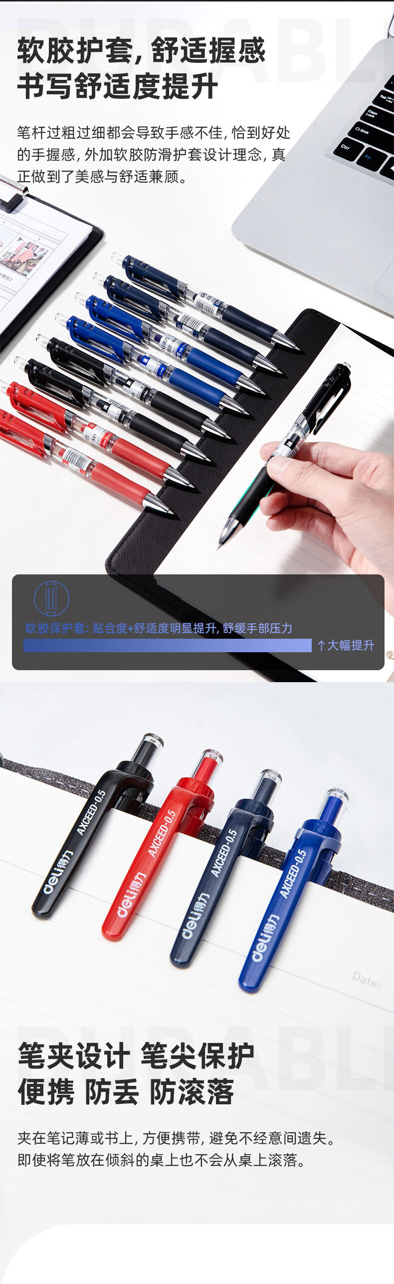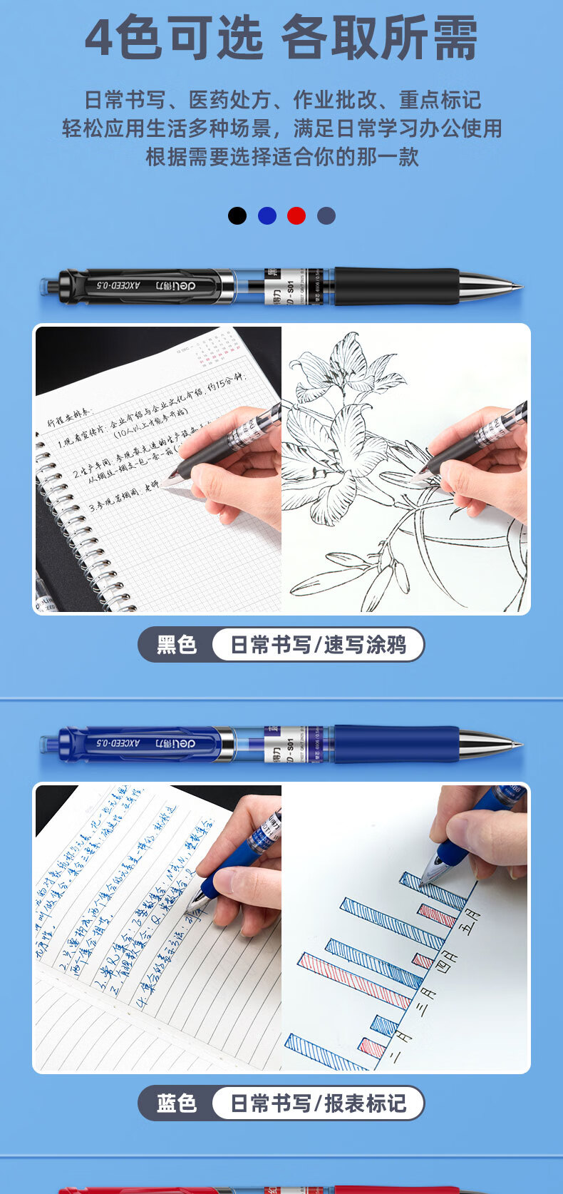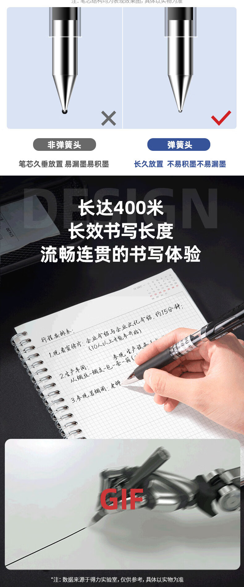 得力S01中性笔0.5mm弹簧头(蓝) 12支/盒 幻影蓝