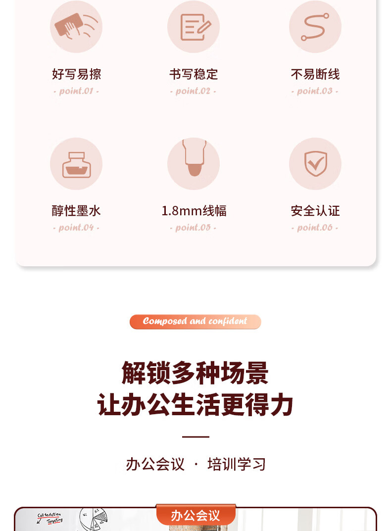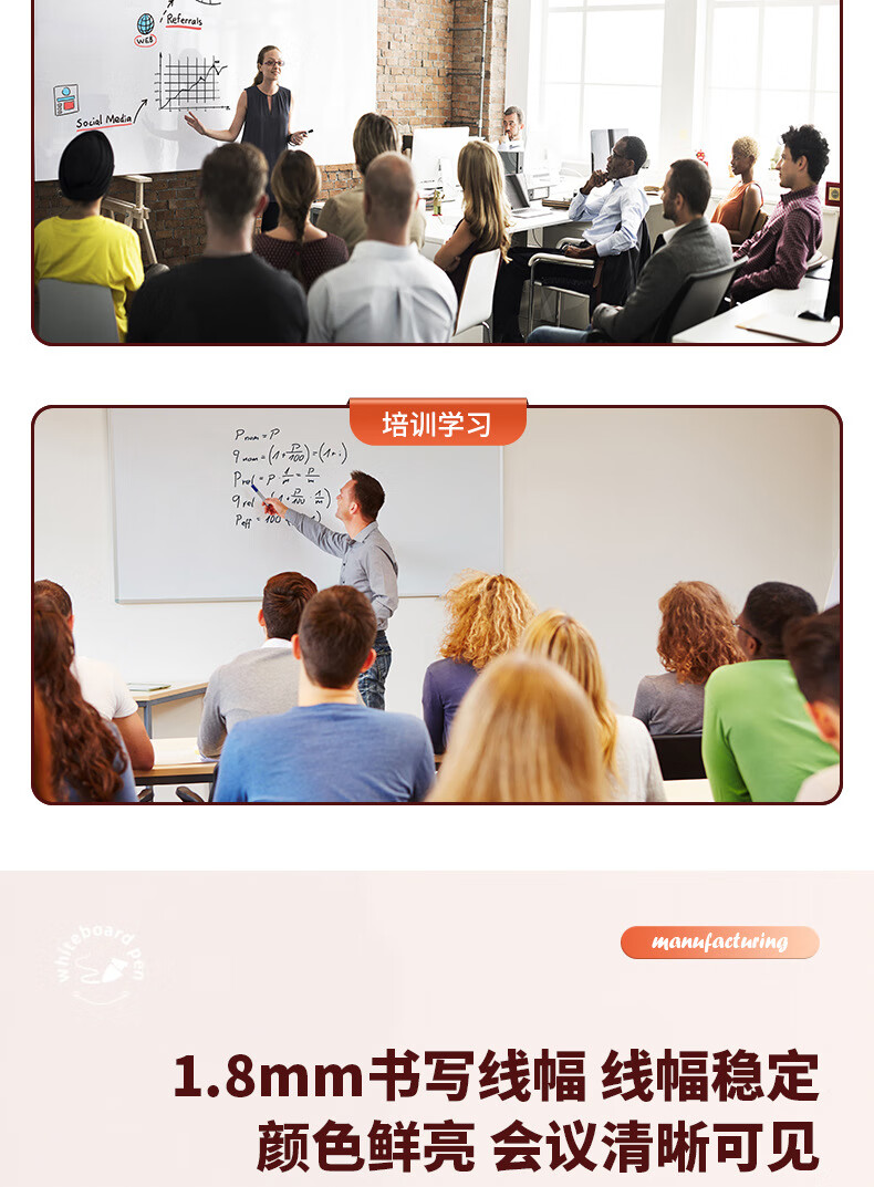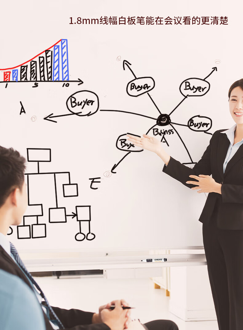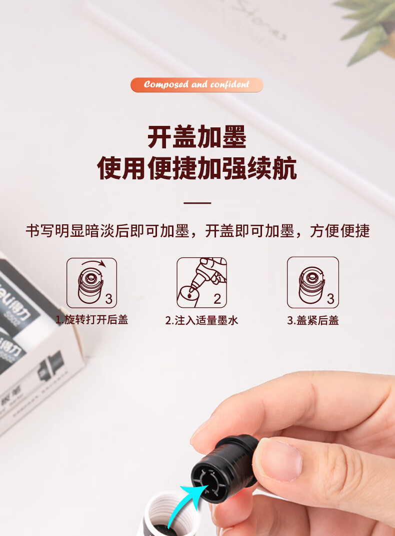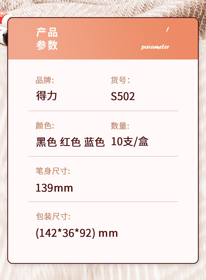 得力S502可加墨白板笔(黑) 10支/盒 黑色