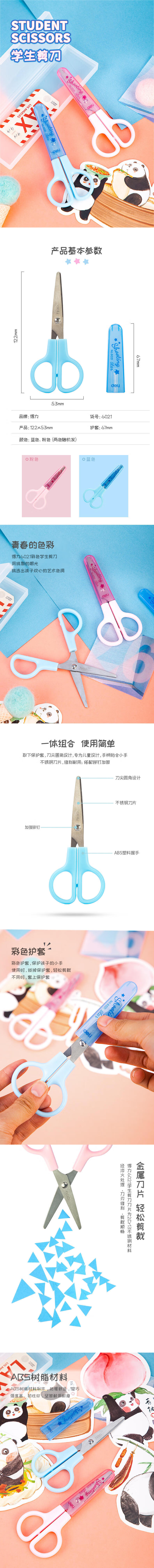得力6021学生剪刀(粉色) 12把/盒 粉色