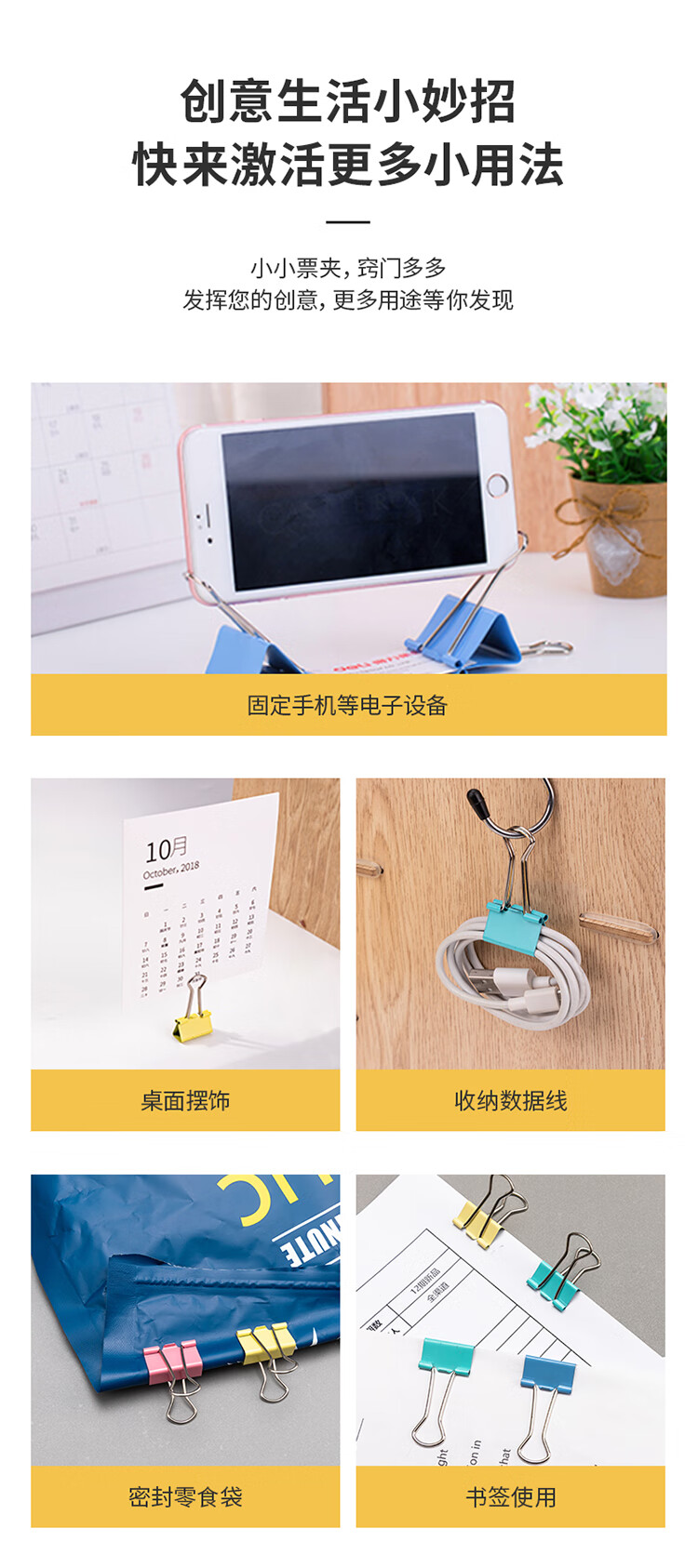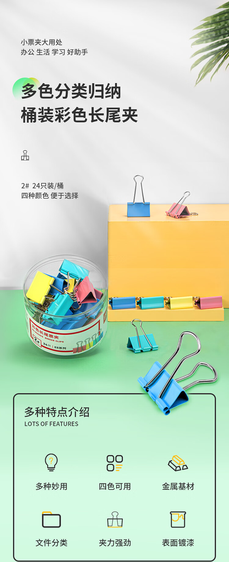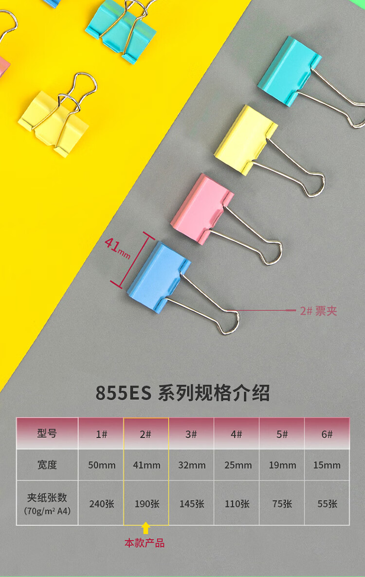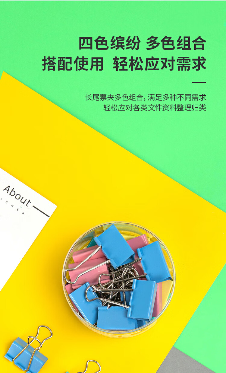 得力8552ES彩色长尾票夹筒装(混)(24只/筒)
