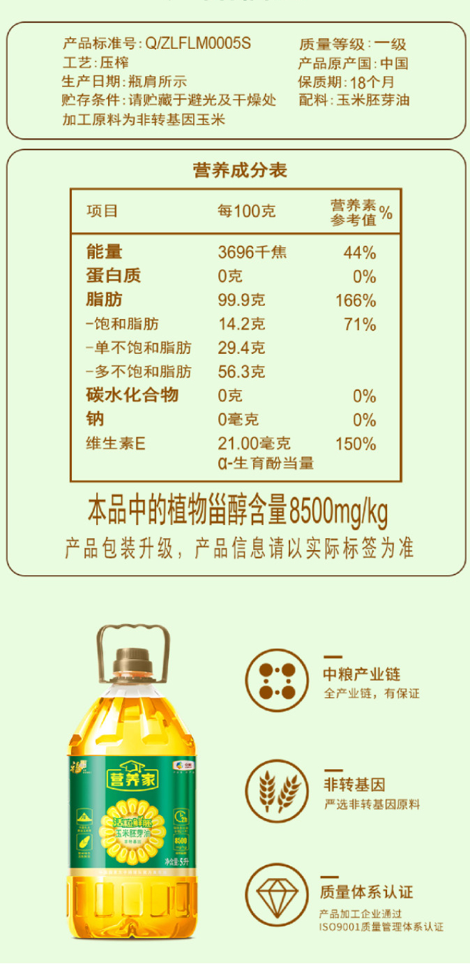 【NW】【DZ】福临门营养家活粒鲜胚玉米胚芽油5L 混色