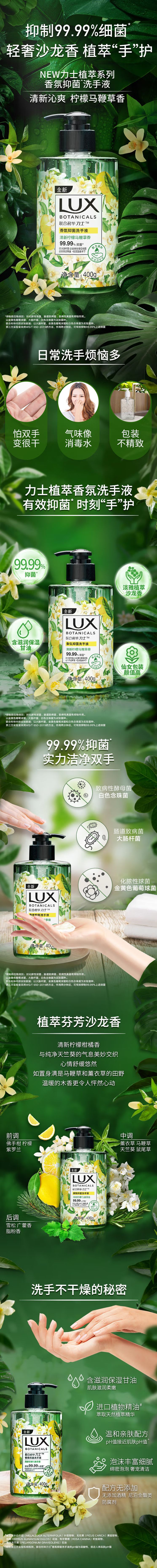 力士香氛抑菌洗手液 清新柠檬马鞭草香400g*2 混色