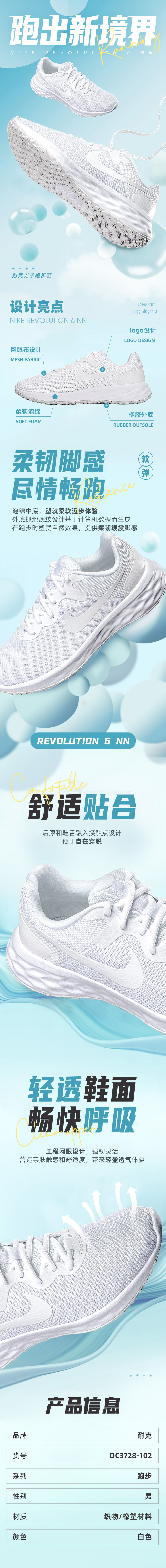 耐克NIKE跑步鞋男缓震透气REVOLUTION 6运动鞋DC3728 白色 40.5