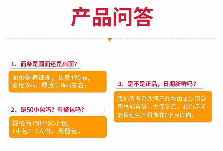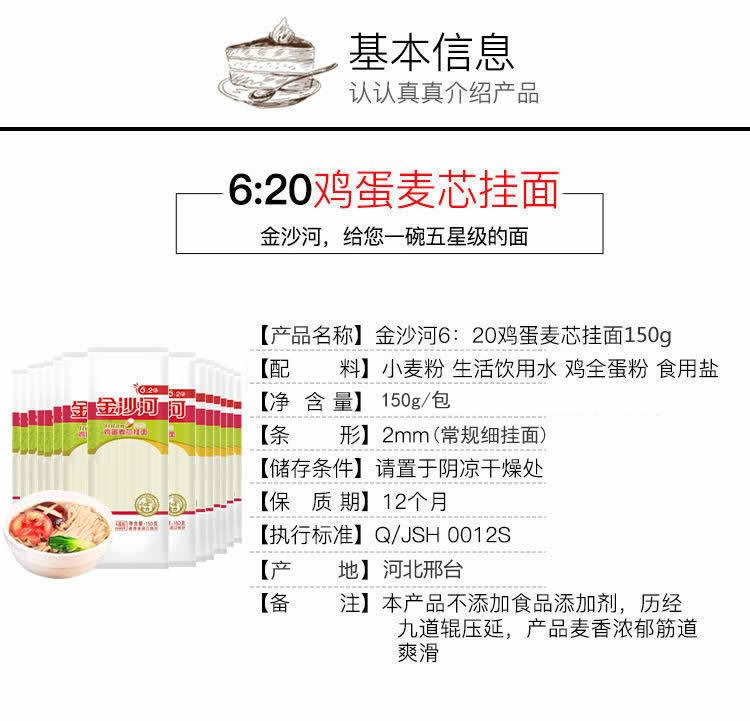 金沙河面条 鸡蛋麦芯挂面 150g*50包/15斤 方便快捷 一餐1小包 红色