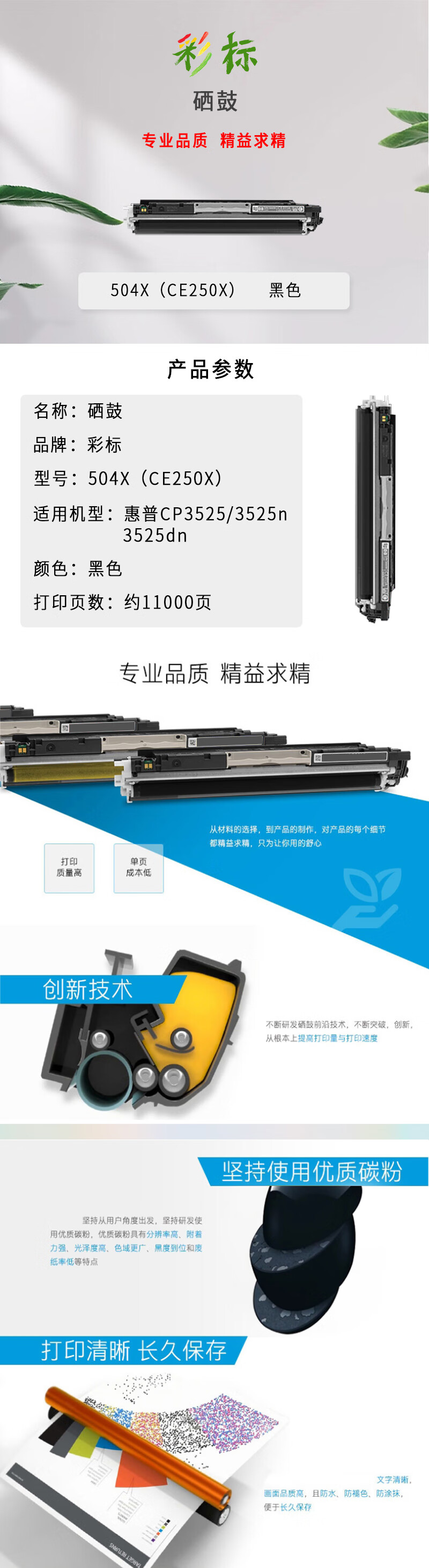 彩标 504X(CE250X) 约11000页 适用于惠普CP3525/3525n/3525dn 硒鼓 (计价单位:只) 黑色 黑色
