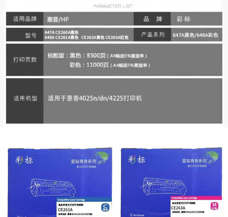 彩标 647A CE260A 约8500页 适用于惠普4025n/dn/4225打印机等 硒鼓 1.00 只/支 (计价单位:支) 黑色 黑色