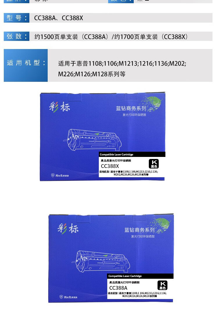 彩标 88X CC388X 约1700页 大容量 硒鼓 (计价单位:支) 黑色 黑色