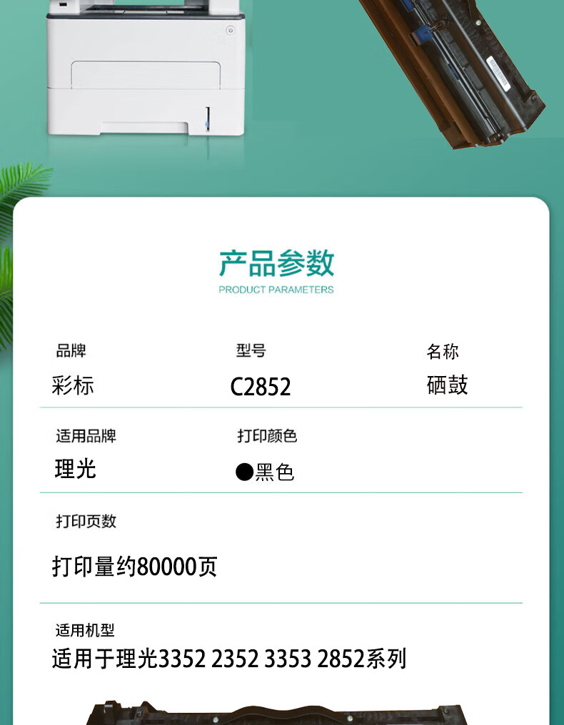 彩标 C2852 约80000页 适用于理光3352 2352 3353 2852系列 硒鼓 (计价单位:只) 黑色 黑色
