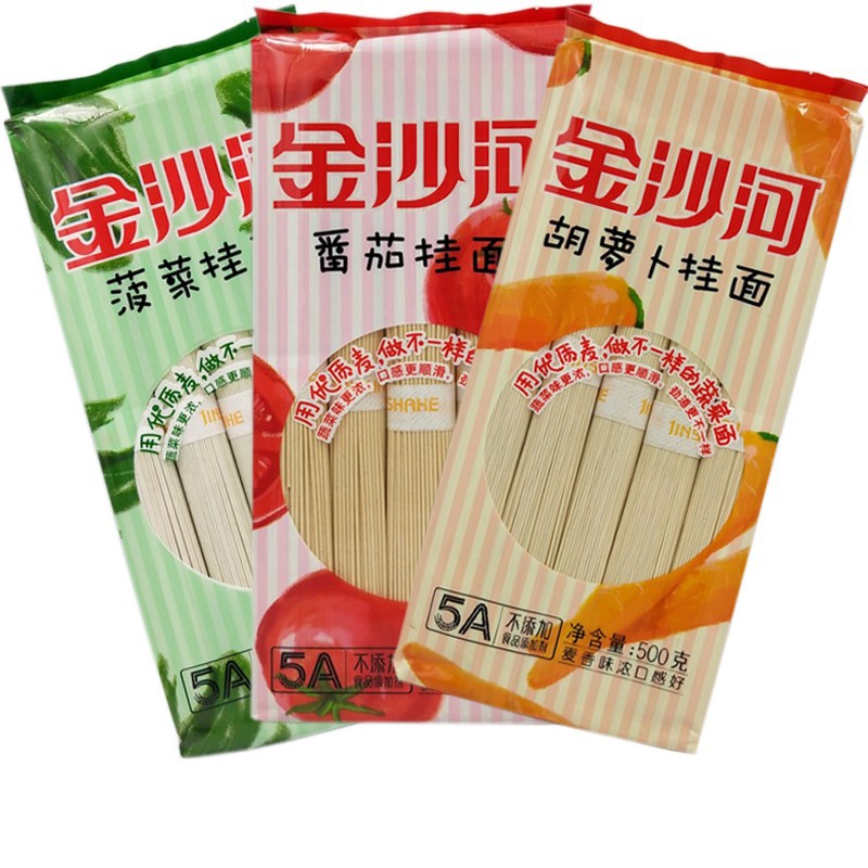 金沙河面条 胡萝卜+菠菜+番茄+绿豆挂面 500g*4包/4斤 果蔬营养面条 绿色
