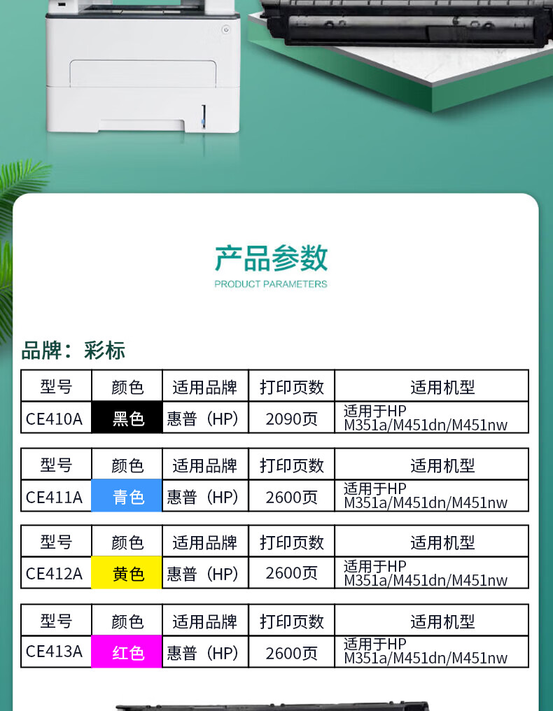 彩标 CE411A 约2600页 适用于HP M351a/M451dn/M451nw 硒鼓 (计价单位:只) 青色 青色