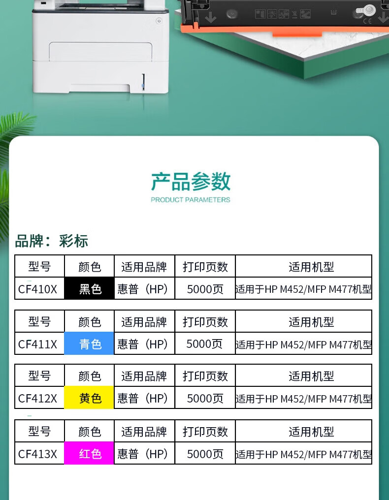 彩标 CF410X 约5000页 适用于HP M452/MFP M477机型 硒鼓 (计价单位:只) 黑色 黑色