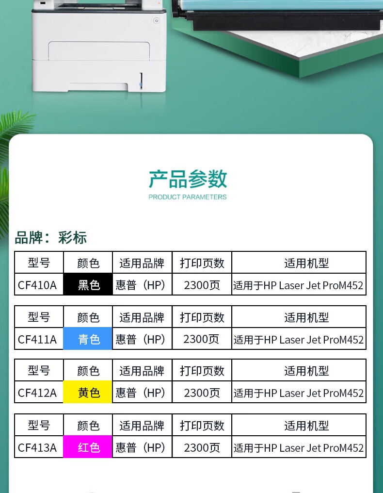 彩标 CF412A 约2300页 适用于HP Laser Jet ProM452 硒鼓 (计价单位:只) 黄色 黄色
