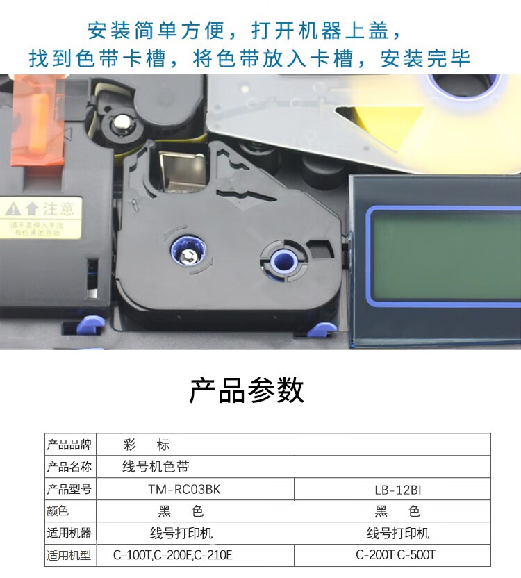 彩标 LB-12BI 100米/卷 线号机色带 1.00 盒/卷 (计价单位:卷) 黑色 黑色