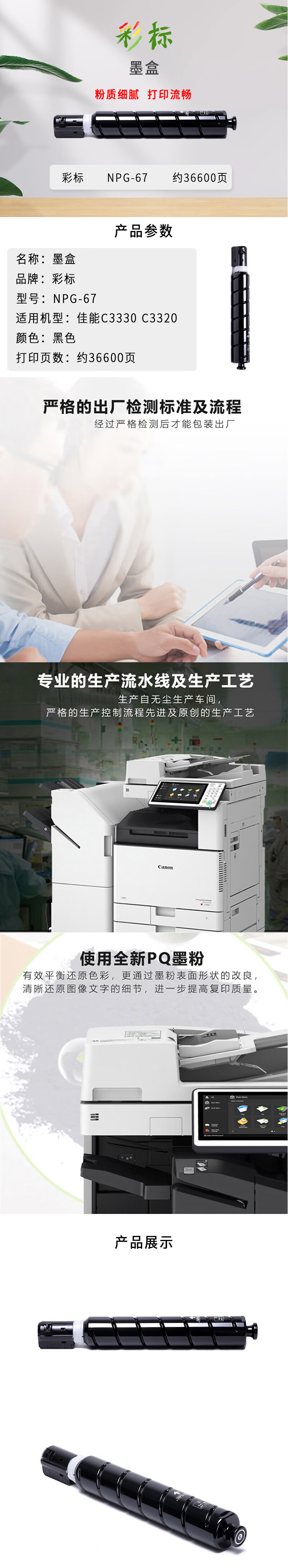 彩标 NPG-67 约36600页 适用佳能C3330 C3320 墨盒 (计价单位:只) 黑色 黑色