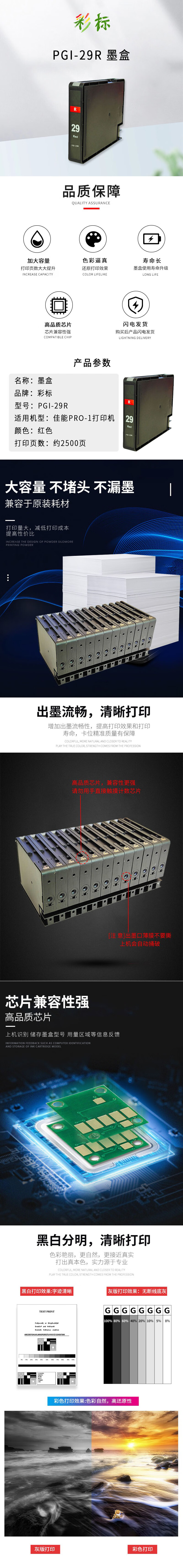 彩标 PGI-29R 约2500页 适用佳能PRO-1打印机 墨盒 (计价单位:只) 红色 红色
