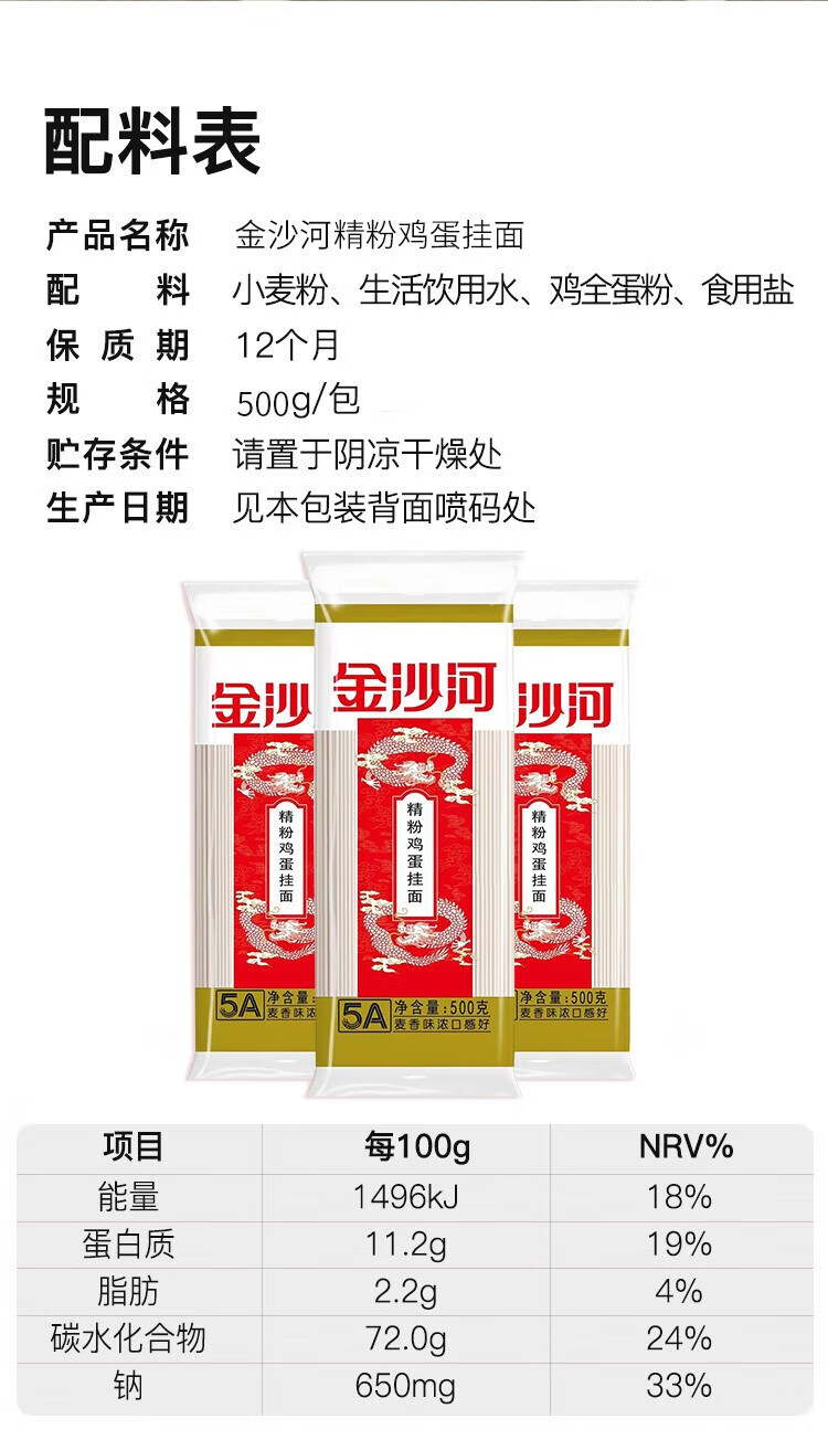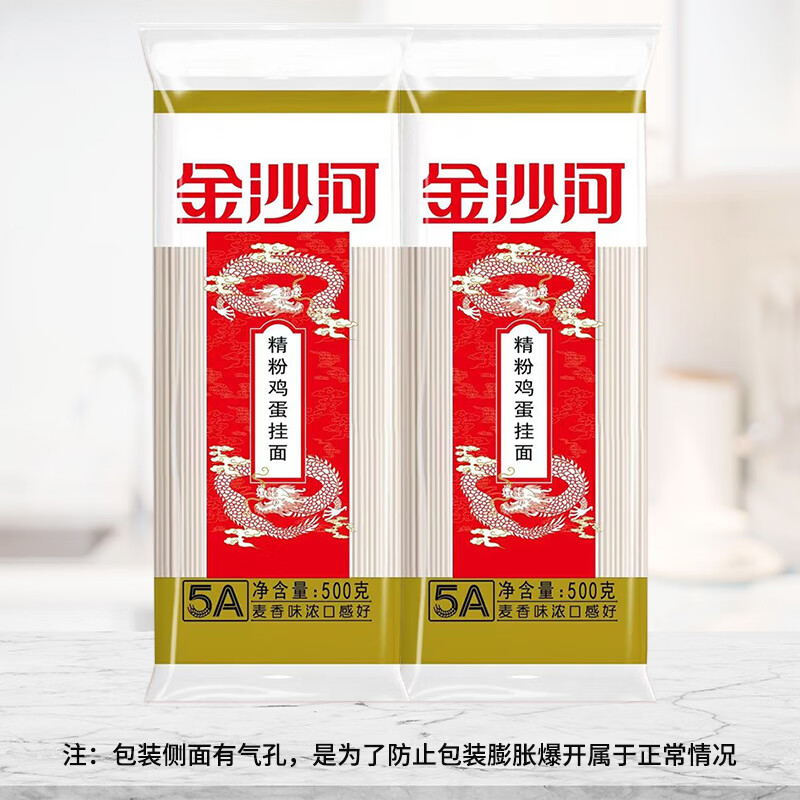 金沙河面条 精粉鸡蛋挂面(2mm扁细面) 500g*5包 红色