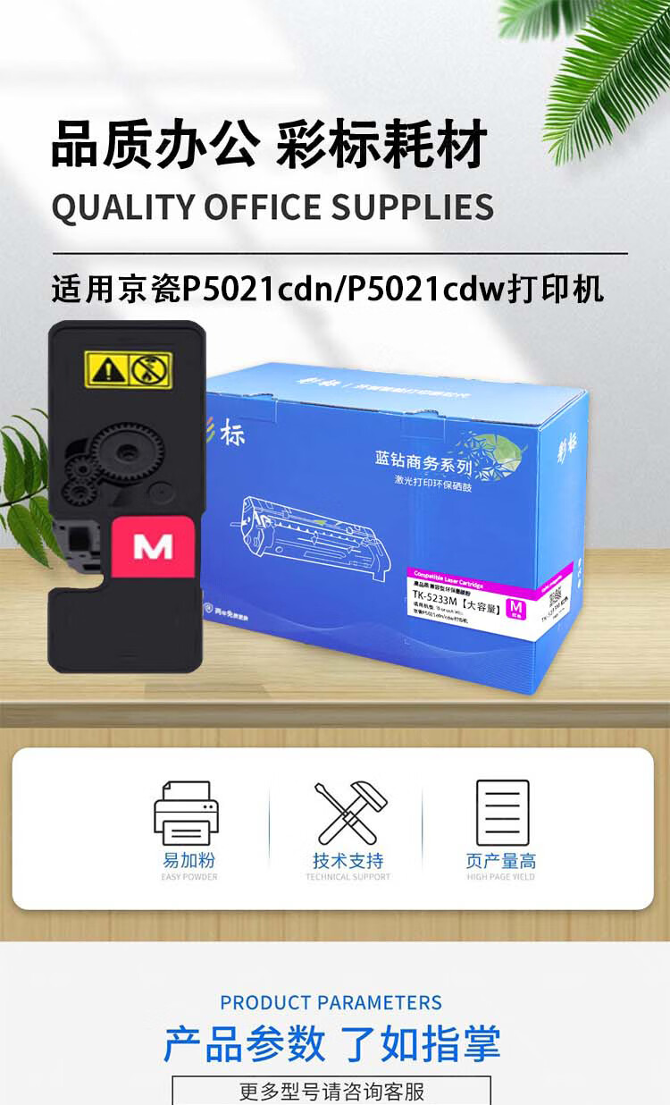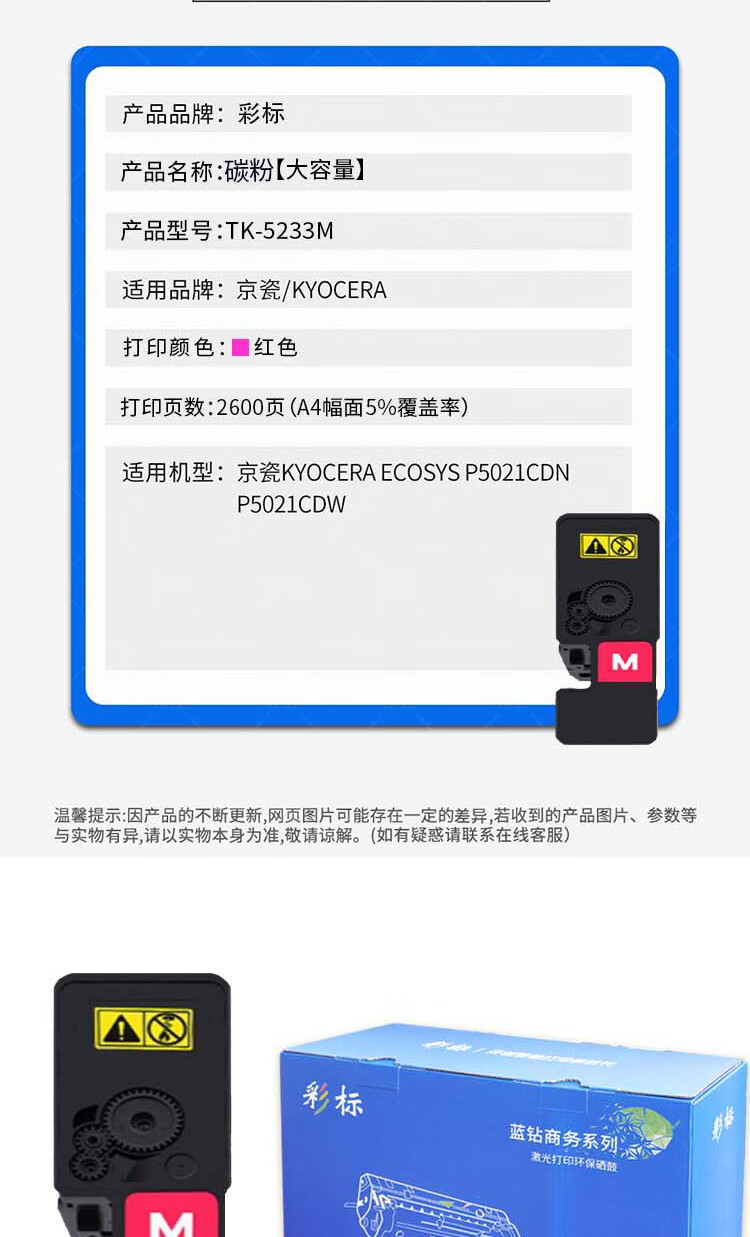 彩标 TK-5233M 约2600页 大容量 适用京瓷P5021cdn/cdw打印机 碳粉 (计价单位:只) 红色 红色