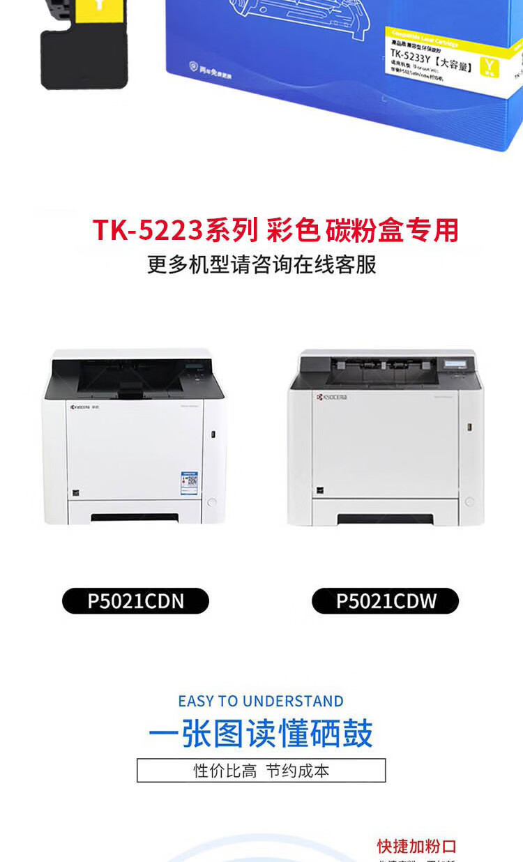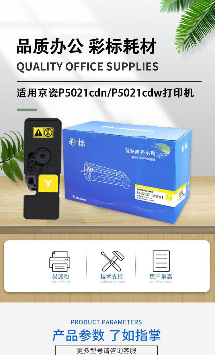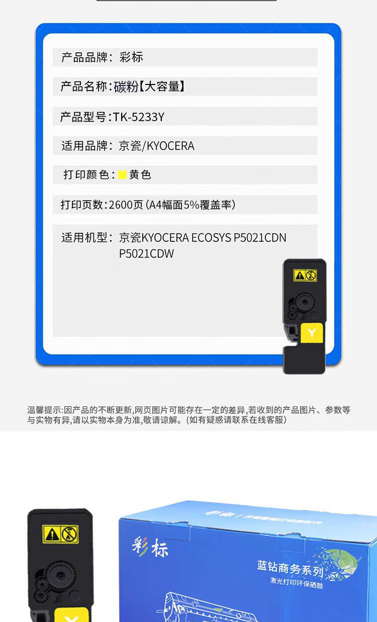 彩标 TK-5233Y 约2600页 大容量 适用京瓷P5021cdn/cdw打印机 碳粉 (计价单位:只) 黄色 黄色