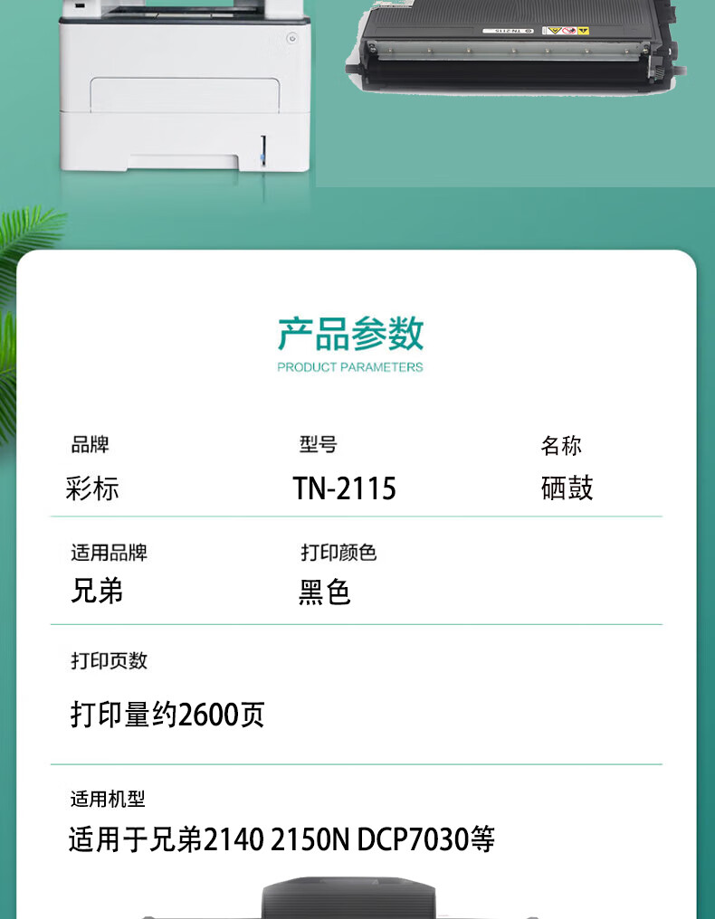 彩标 TN-2115 约2600页 适用于兄弟2140 2150N DCP7030等 硒鼓 (计价单位:只) 黑色 黑色
