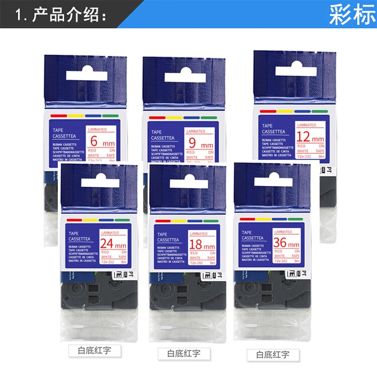 彩标 TZe-222 9mm 标签色带 1.00 盒/个 (计价单位:个) 白底红字 白底红字