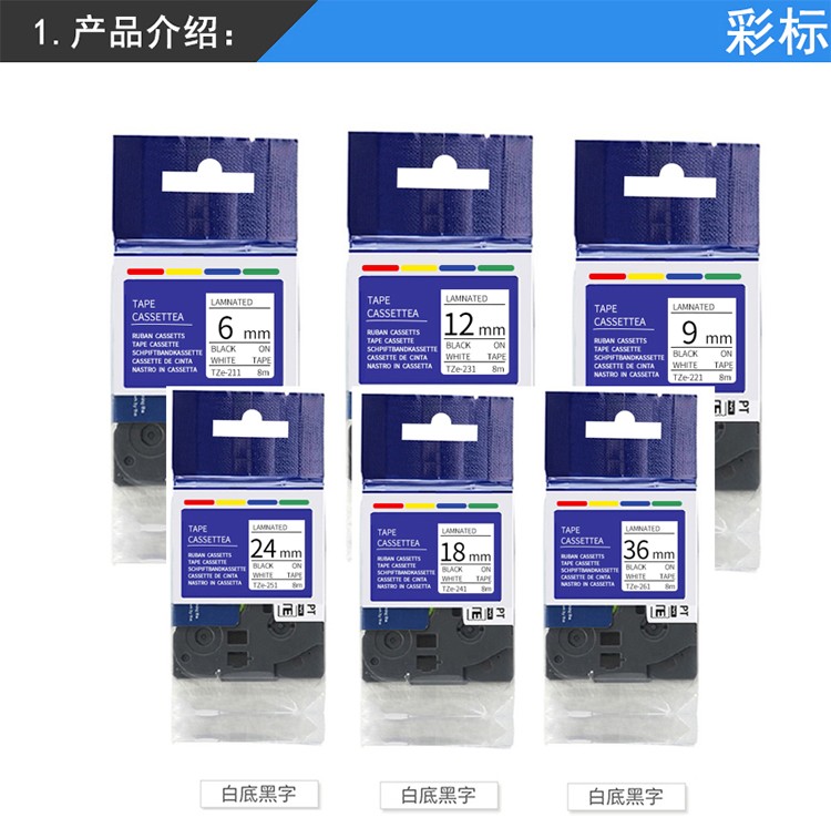 彩标 TZe-251 24mm 标签色带 1.00 盒/个 (计价单位:个) 白底黑字 白底黑字