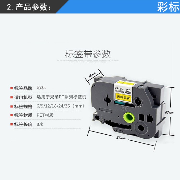 彩标 TZe-261 36mm 标签色带 1.00 盒/个 (计价单位:个) 白底黑字 白底黑字