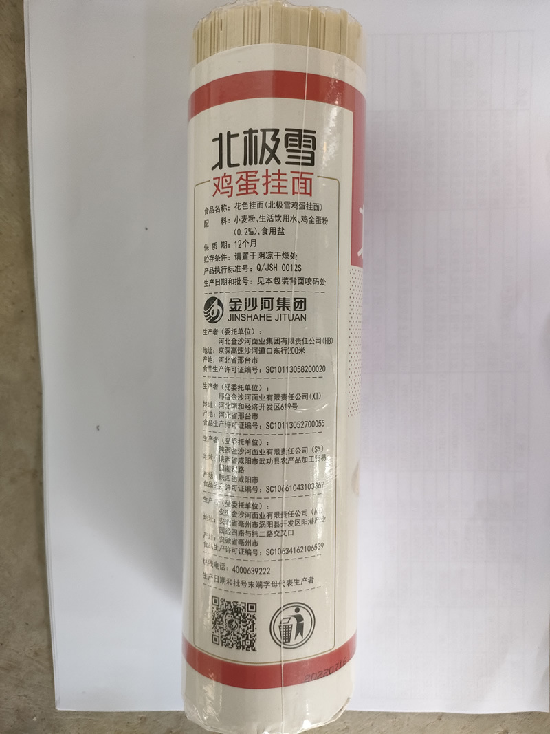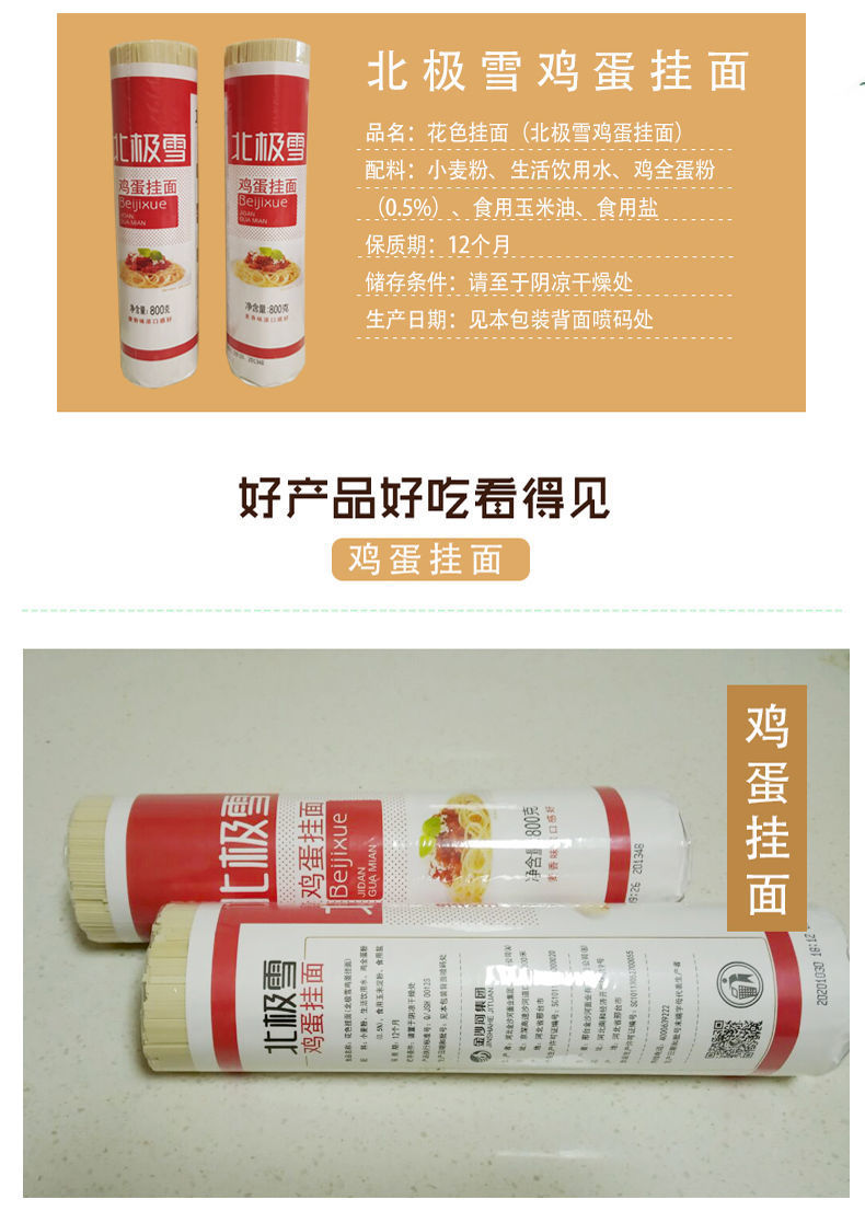 金沙河北极雪 鸡蛋挂面 800g*3筒/4.8斤 红色