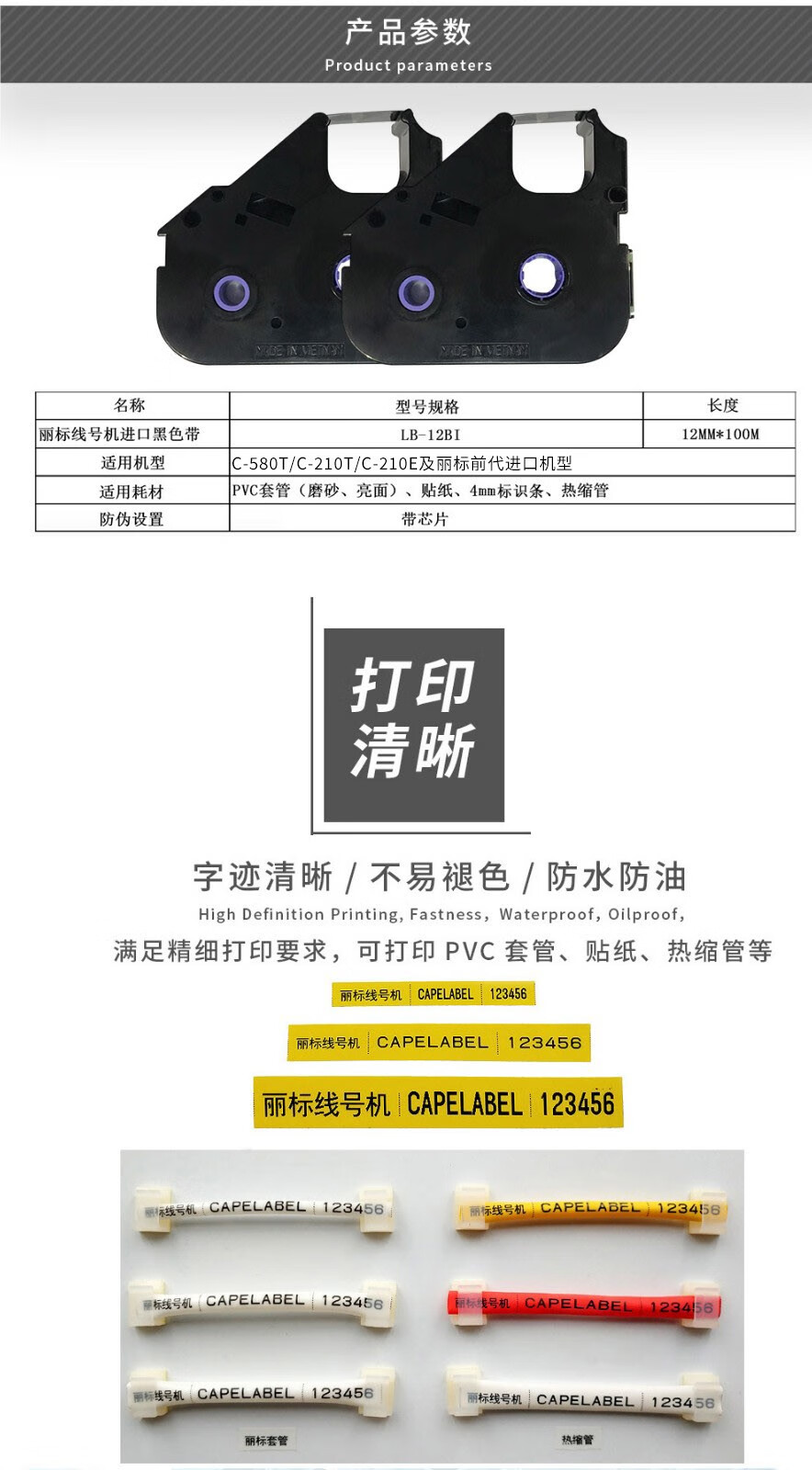 丽标(capelabel) LB-12BI 100M*12MM 线号机色带 (计价单位:盒) 黑色 黑色
