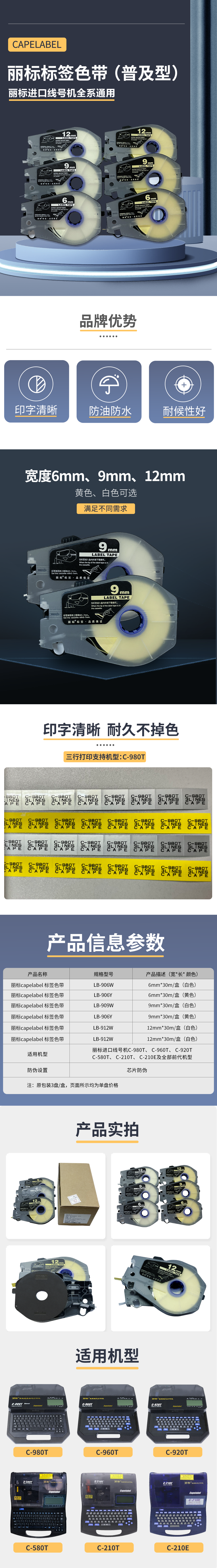 丽标(capelabel) LB-906Y 30M*6MM/盒 标签色带 (计价单位:个) 黄色 黄色