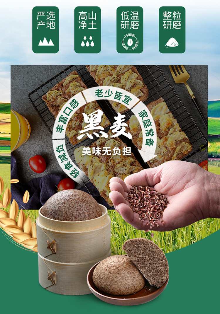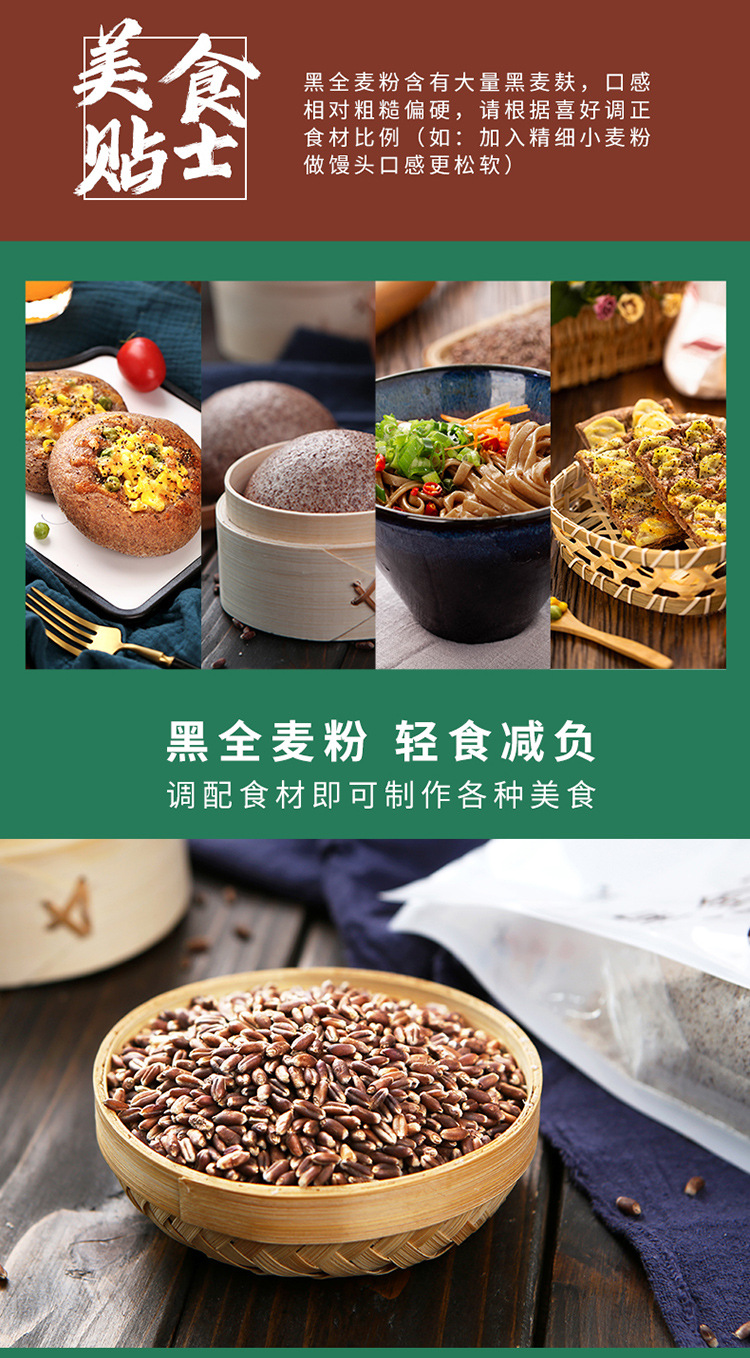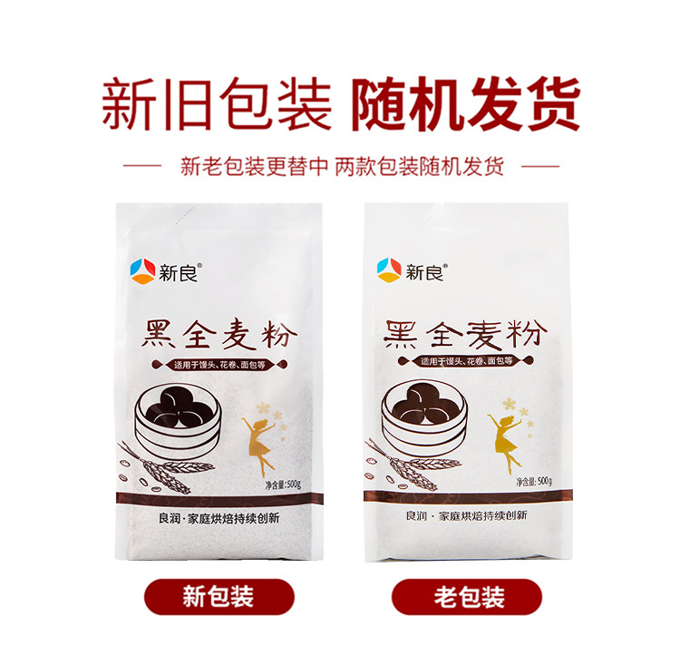 新良 黑全麦粉 500g*5袋 黑小麦全麦面粉 粗粮杂粮面粉 烘焙原料 褐色
