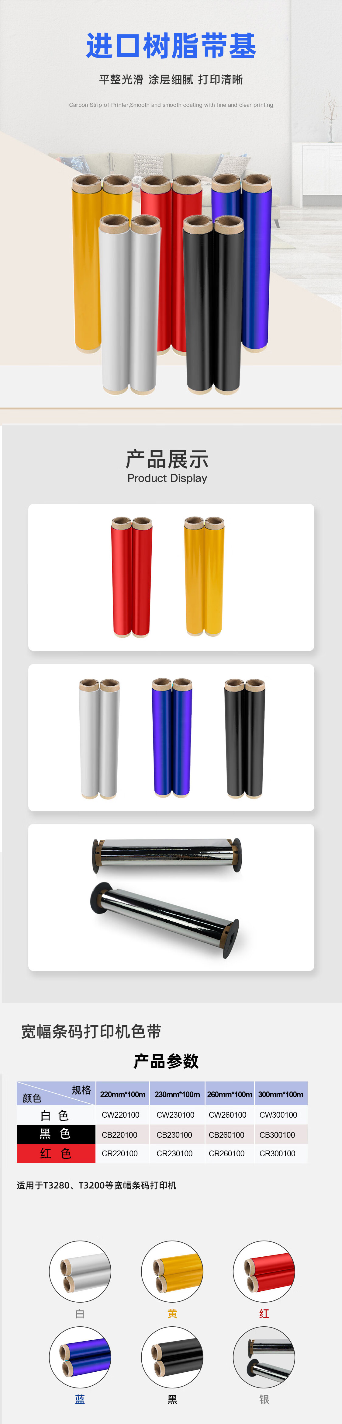 普贴(PUTY) CB230100 230mm*100m 100米打印长度 适用机型T3280 色带 (计价单位:盒) 黑色 黑色