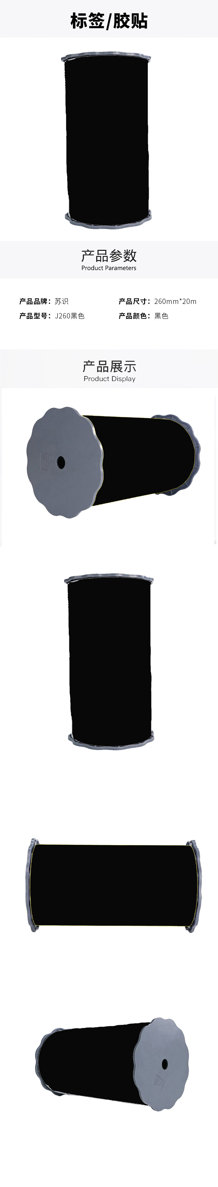 苏识 J260黑色 260mm*20m 适用SP2600标牌打印机 胶贴 (计价单位:盒) 黑色 黑色