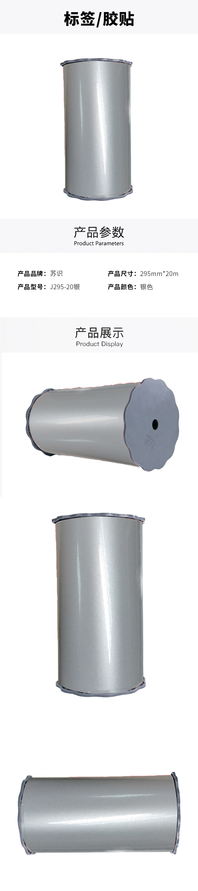 苏识 J295-20银 295mm*20m 适用SP2600标牌打印机 胶贴 (计价单位:盒) 银色 银色