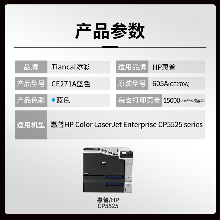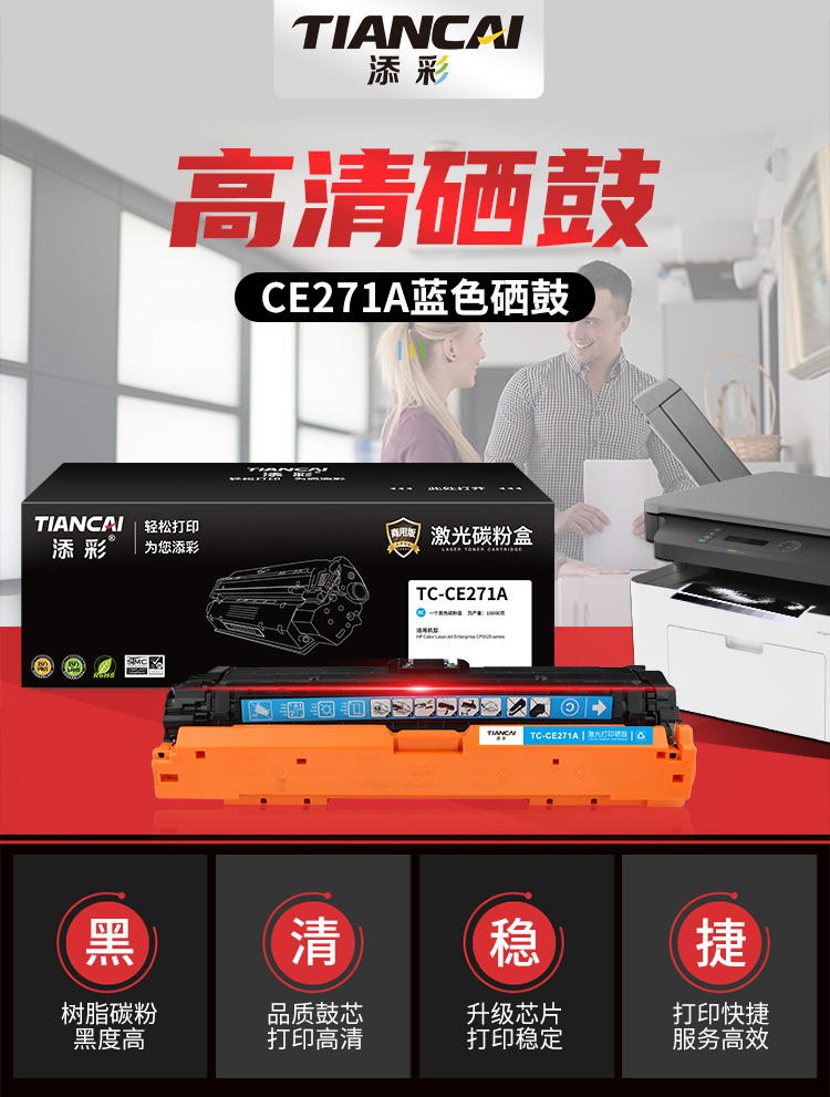 添彩 TC-CE271A 商用版 适用于HP Color LaserJet Enterprise CP5525 series 打印量15000页 硒鼓 1.00 只/个 (计价单位:个) 蓝色 蓝色