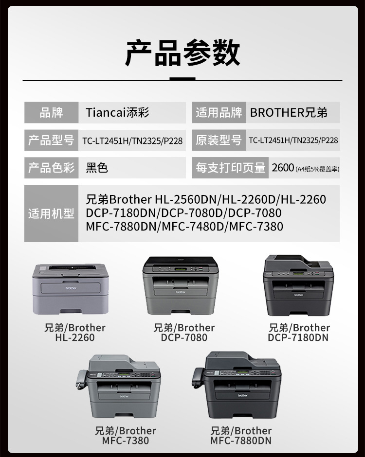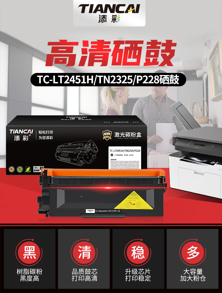 添彩 TC-LT2451H/TN2325/P228商用版 适用于兄弟 HL-L2300D 粉盒 个 黑色-打印量2600页