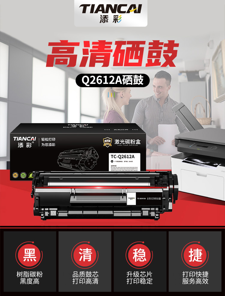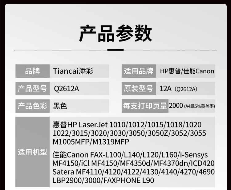 添彩 TC-Q2612A商用版 适用于HP LaserJet 1015/101M1005MFP硒鼓个 黑色-打印量2000页