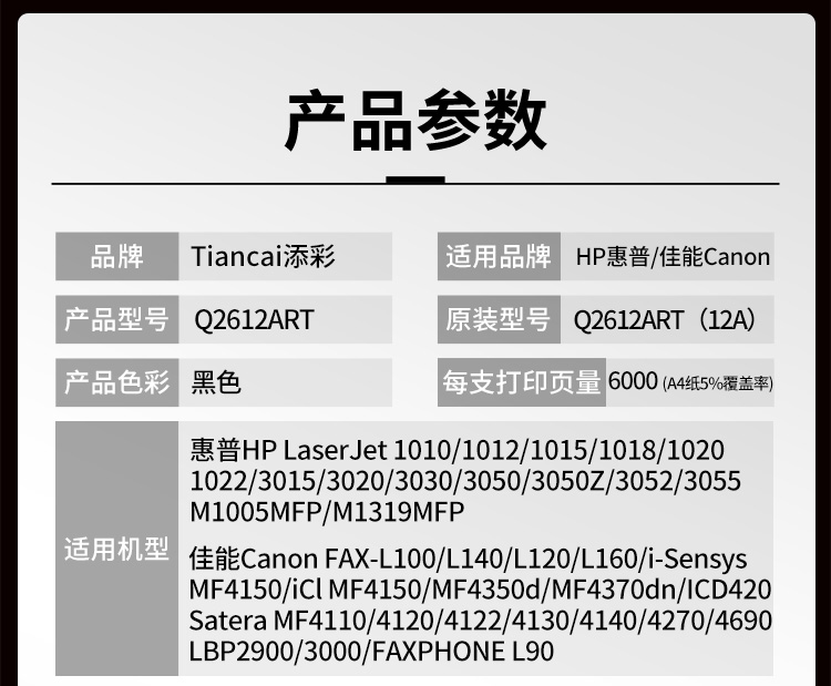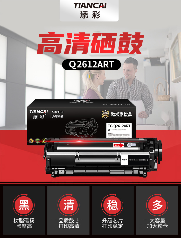 添彩 TC-Q2612ART 商用版适用HP3050Z/3052/3055/M1005MFP硒鼓 个 黑色-打印量2000页