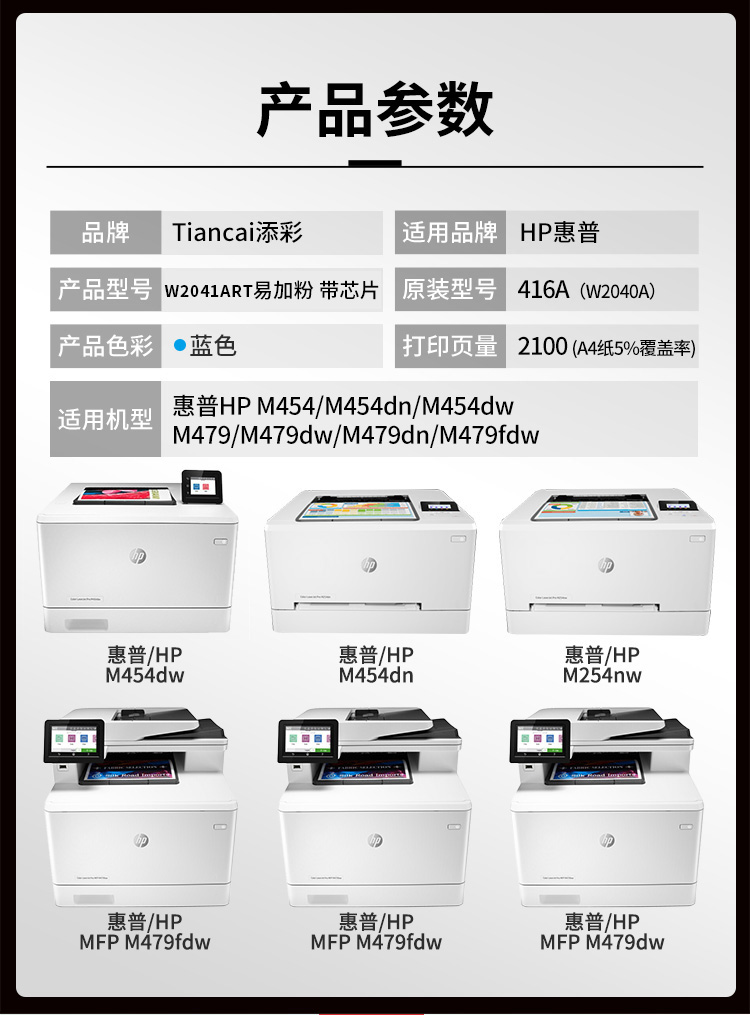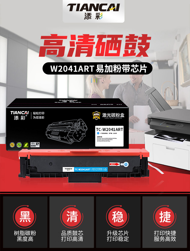 添彩 TC-W2041ART 2100页 (适用于HP Color LaserJet M454 M454dn/M454dw.HP MFP M479等) 带芯片商用版硒鼓 (计价单位:只) 青色 青色