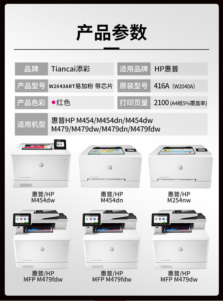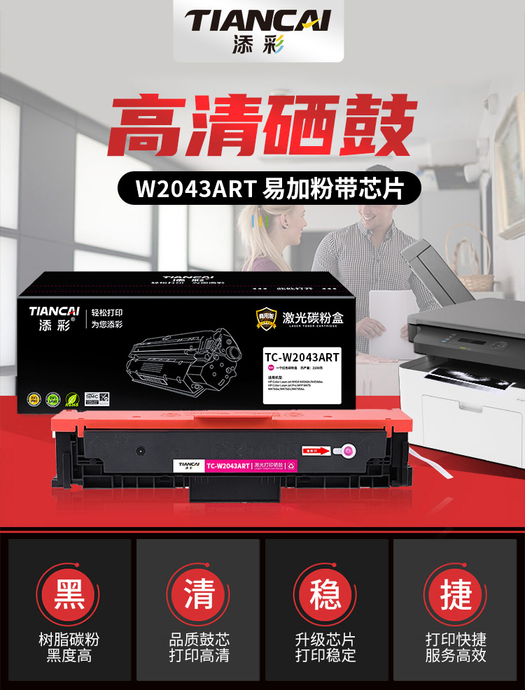 添彩 TC-W2043ART 2100页(适用于HP Color LaserJet M454 M454dn/M454dw.等) 带芯片商用版硒鼓 (计价单位:只) 洋红色 洋红色