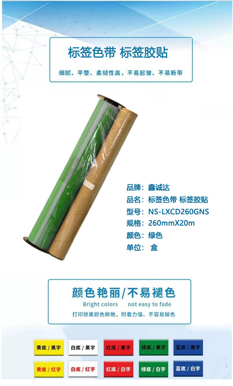 鑫诚达 NS-LXCD260GNS 260mmX20m 标签色带 标签胶贴 1.00 个/盒 (计价单位:盒) 绿色 绿色