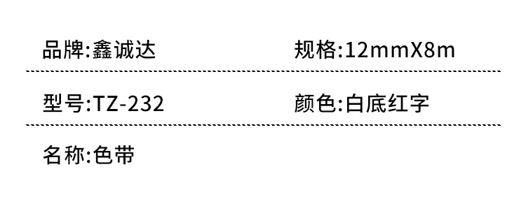鑫诚达 TZ-232,12mmX8m,白底红字 色带 (计价单位:盒) 白色 白色